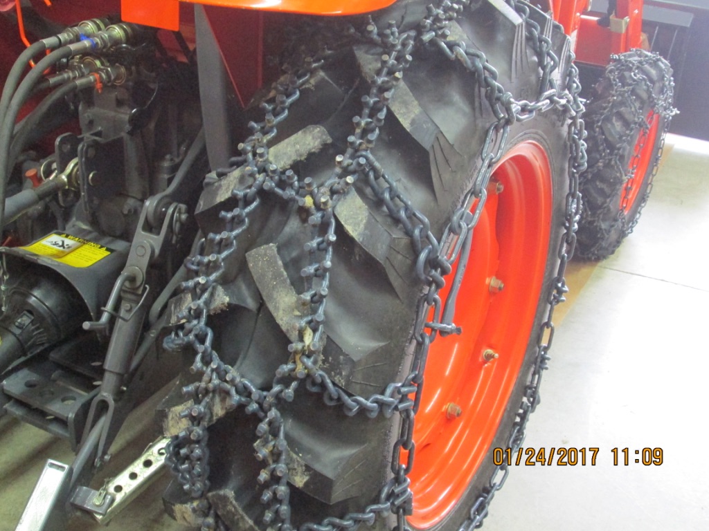 After 5 hours of slipping and sliding around on the sloppy wet snot that we got yesterday and overnight I bit the bullet and bought a full set of chains. Front and rear. Duo Grip from Canadian Chains. $984.oo tax in and delivered. It will probably take about 2 weeks to get here from BC.
