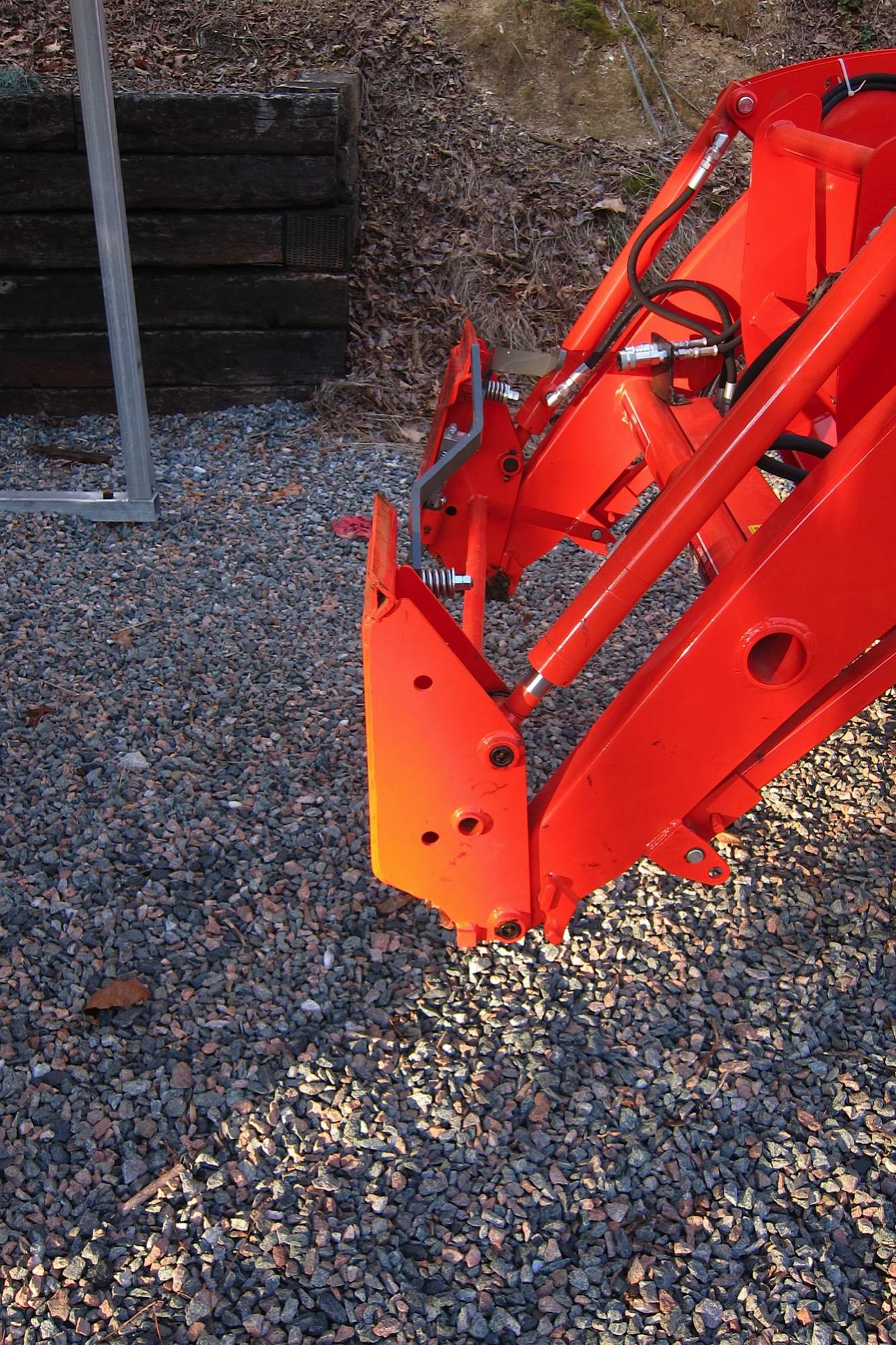 When done you now know not to try to lift such a long load with the grapple. The sway on a long log- 30' or so can really exert drastic racking force on the loader arms, as in your case, and if you got it too high off the ground would lift one of your rear wheels off the ground in virtually no time in an attempt to flip the tractor entirely; so be careful going forward from this point and cut trees into more manageable size, and keep the center of gravity low by keeping the larger logs close to ground until you have more hours on the clock.