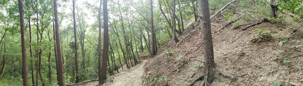 I have a steep property in my back yard up to the hilltop as well. I rented a mini-ex a few years ago and got as far as I could while I had it. There were a lot of points where I had to use the bucket to pull myself up hills and I tipped over a few times only to be caught by the bucket itself. The road has held up with only a few run off points, and eventually I will get myself to the top, but need to plan it a little bit before I start up again.