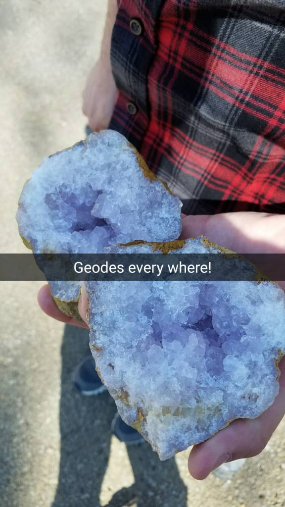 Neat! Save the geodes and find someone with a wet saw to cut them open cleanly. Polish the cuts and sell them on-line. My father did that for years in his spare time. He knew a guy in southern Indiana that would let you into his creekbed for $10 a day, all you could haul out! :laughing: