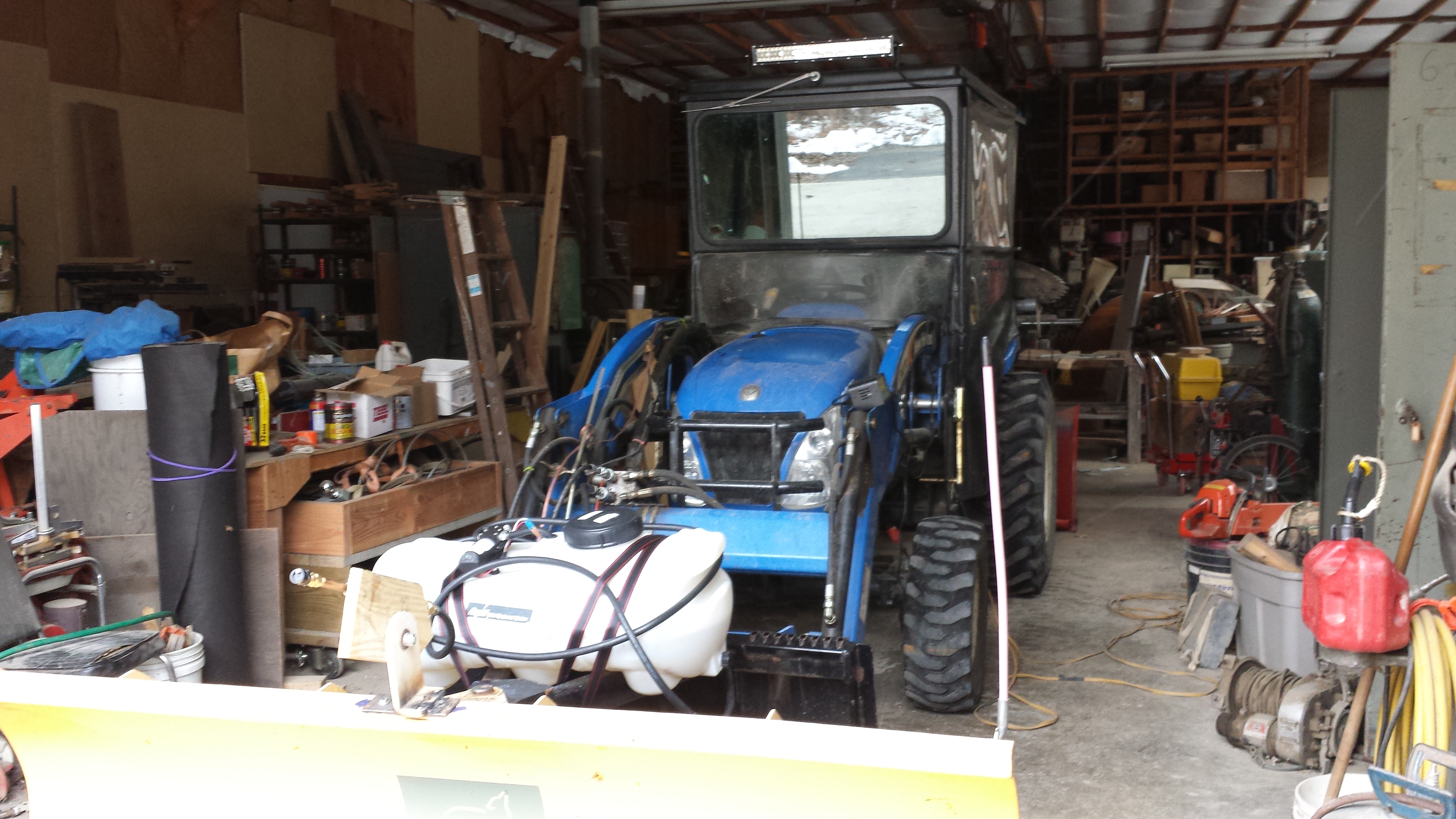 The tank sprayer is pretty cost effective $100 . My tractor is already set up to spray with electrical plugs and switches. So tank is on the way, Home depot has for no shipping charge to the store 5 gal of some kind of no stick stuff. $55 Has mixed reviews I figure I will get 3 passes out of 5 gal Has to go on before it snows.