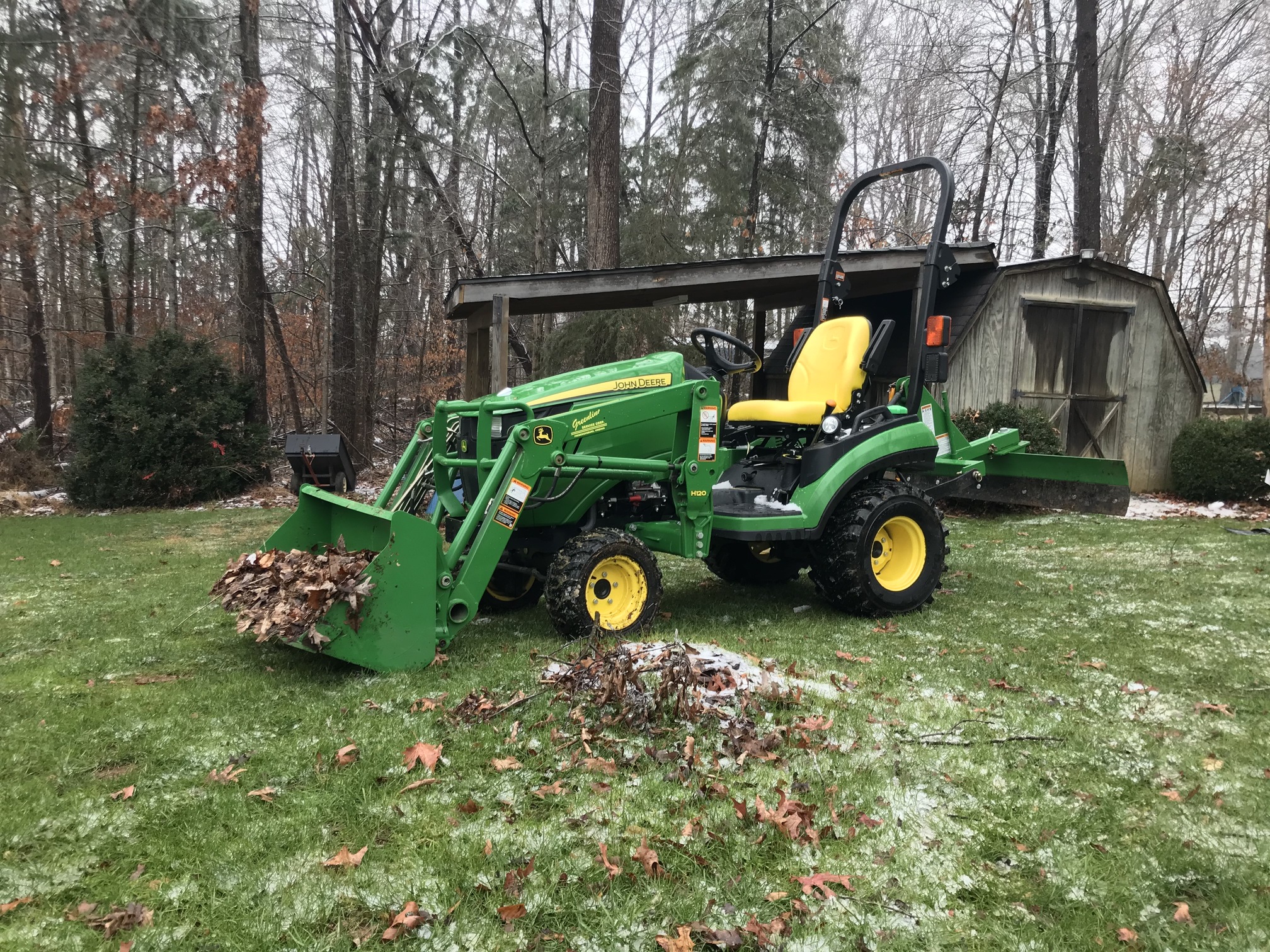 Well it's been awhile. Parted with my Kubota BX2360 in 2014 but recently began the search anew. I knew it had to be green; I grew up earning money in the summer on my Dad's GT275 - which I have now along with a GT235. I looked at 2210's, 2305's, 4100's, 1026R's... and I am sure a few others. I was close to pulling the trigger on a 2305 when I came across a 2016 1025R with 122 hours. I put some cash down and somehow ended up with same as new financing on the balance. I am thrilled to pieces, looking forward to keeping this one forever!