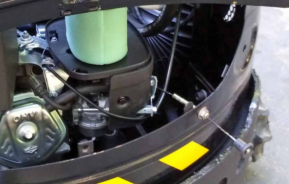 Here is the Ouke machine showing inside the house. The throttle cable needs more slack, even after I re-routed it above the choke cable.