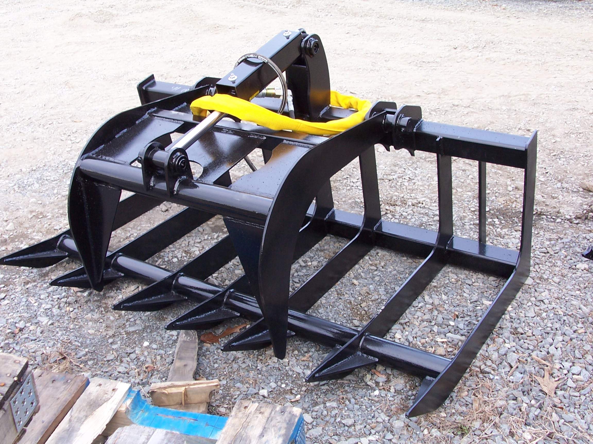 We do build a LD Grapple for 50HP or less tractors with a skid steer universal hook-up but we don't advertise it, If anyone is interested here is a picture of one in stock now, it is a 66" single grapple, 3/8 thick continuous bottom tines. The price is $ 1188.00 plus your shipping, but we have a killer discount with several trucking companies and doubt you can get cheaper shipping anywhere. Just let me know if you have more questions ,that's my job!