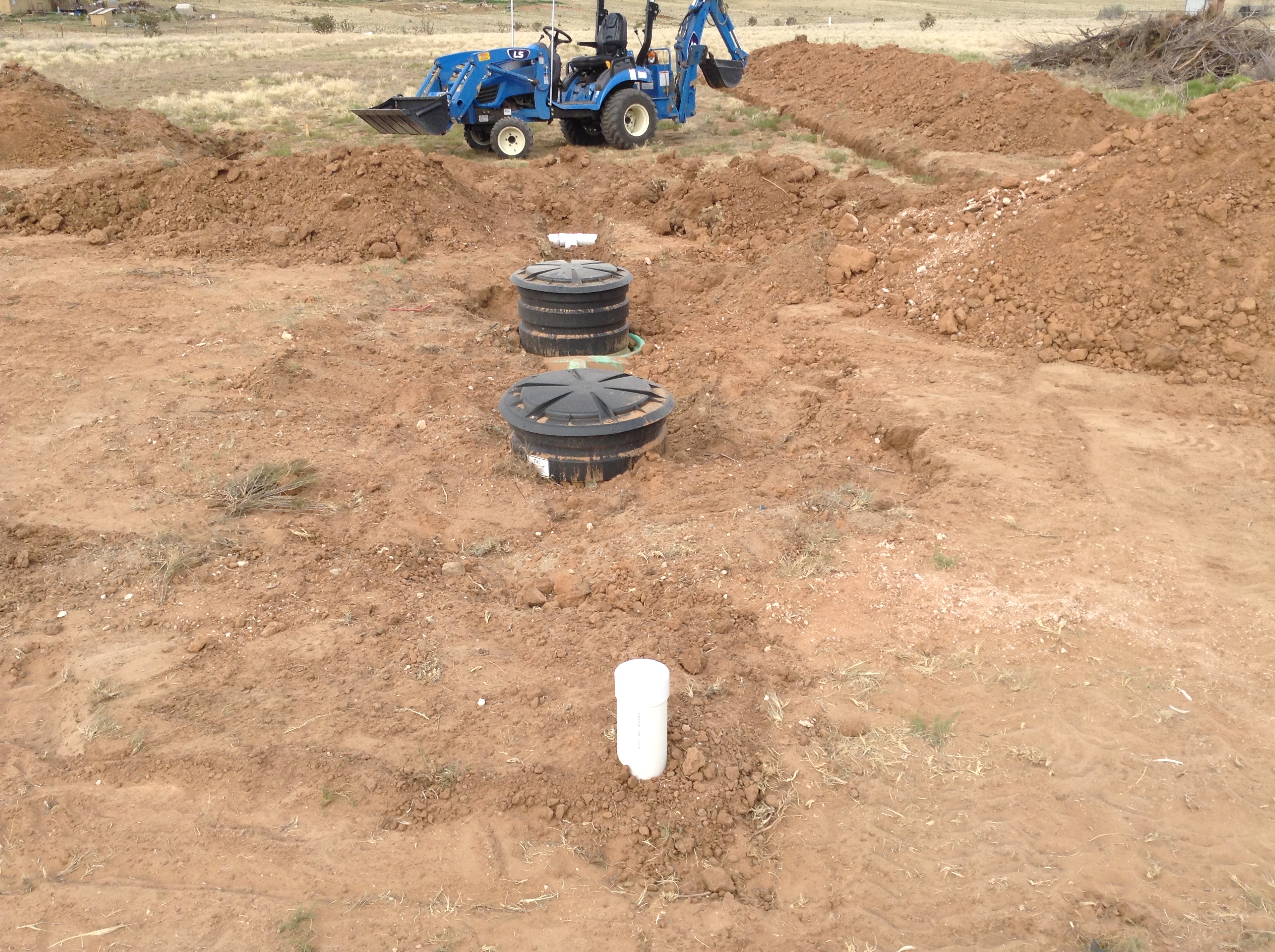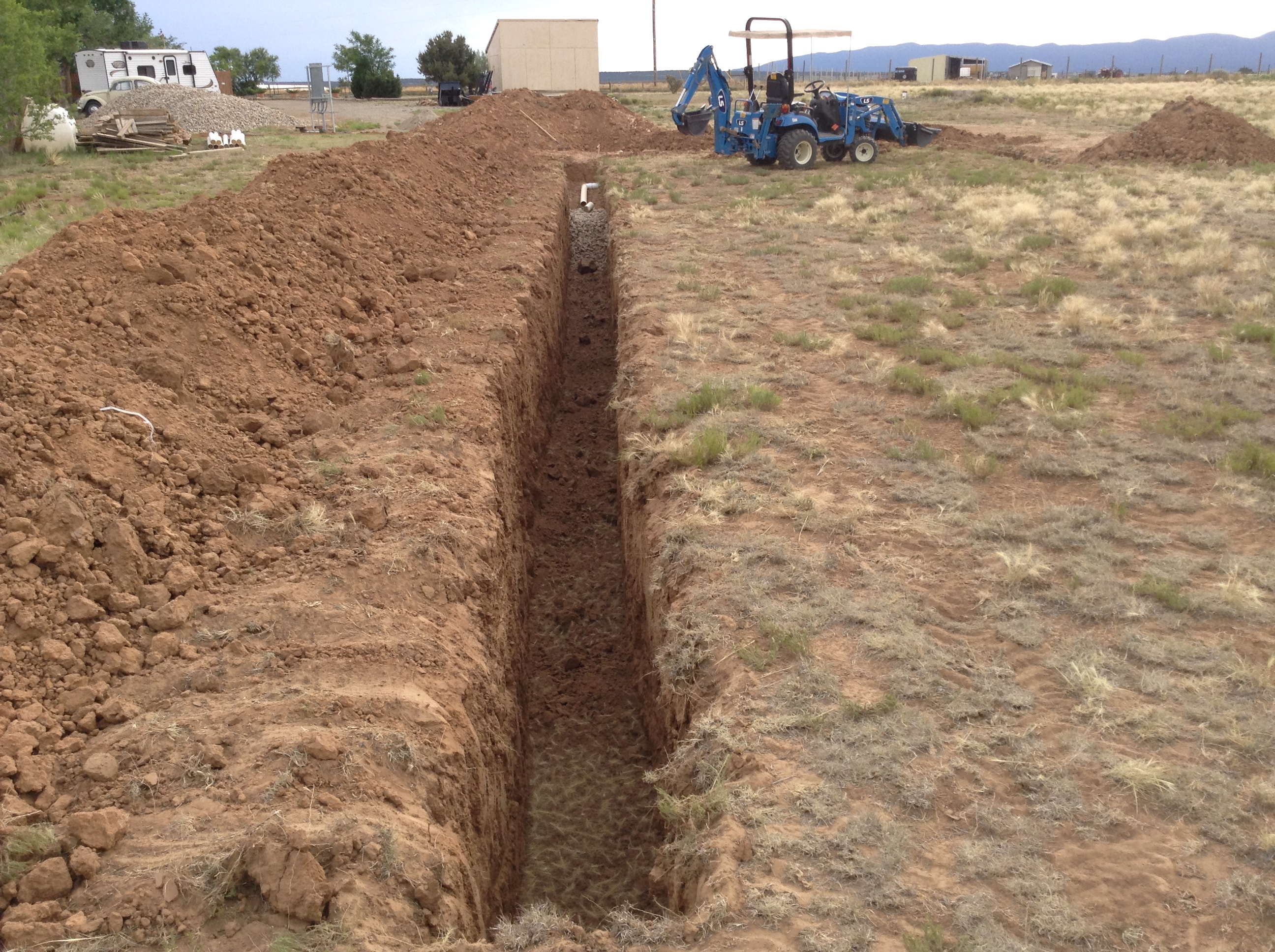 Probably not in NM but around here you'd have to fill that tank so a big rain didn't float it out of the ground. Nice views, and a nice straight trench. Must not be many rocks!