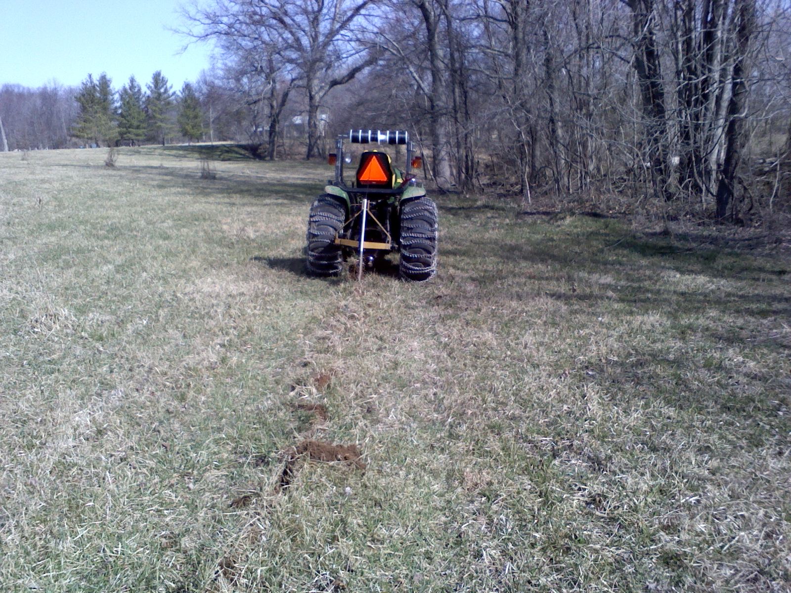 I made a plow for my 2210 and installed my dog fence. Basically a light weight subsoiler with a feed tube. Built from scrap I had laying around.