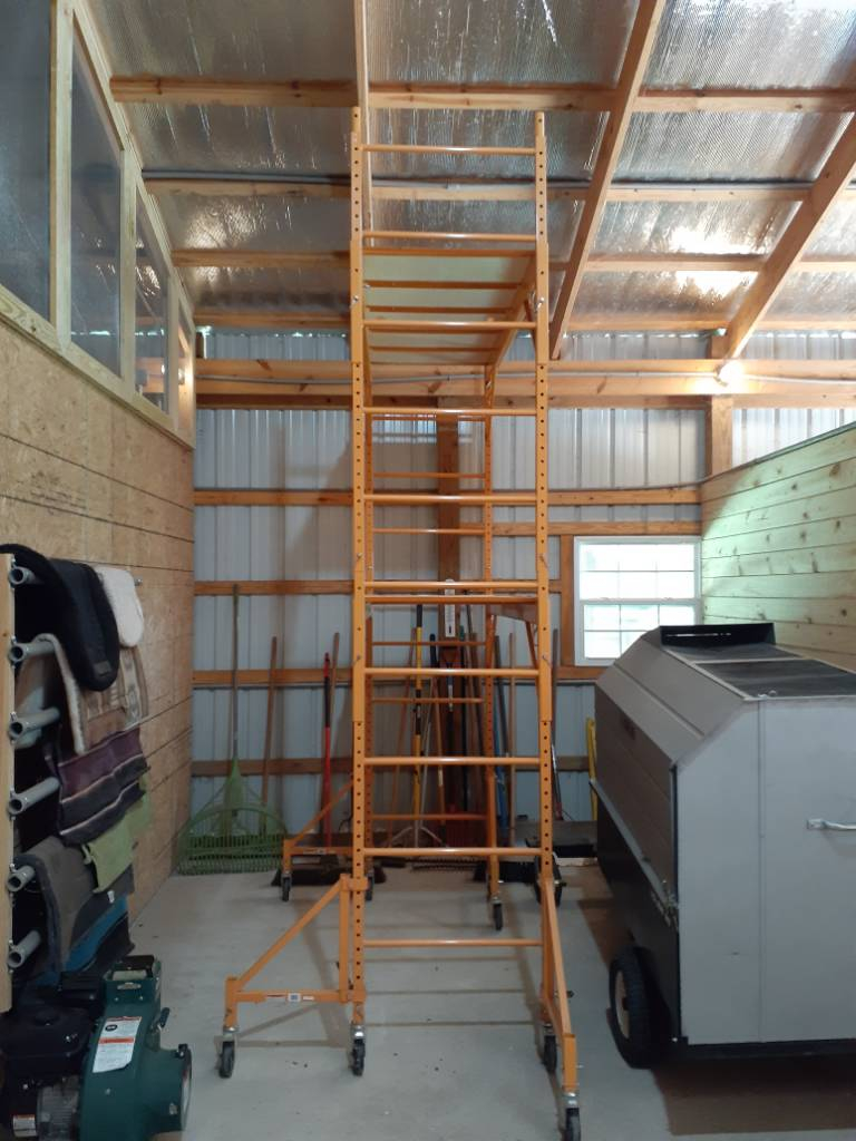 I'm late seeing this scaffolding post, but for our new horse stable I bought scaffolding because I had lots of projects, lights, fan, etc.