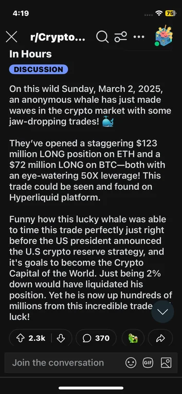 There were however a few "mysteriously well timed" transactions around the whole "strategic reserve" announcements... Tell me again how it's not all just insiders soaking retail hard. Seriously who does a 50x long position.. hah.