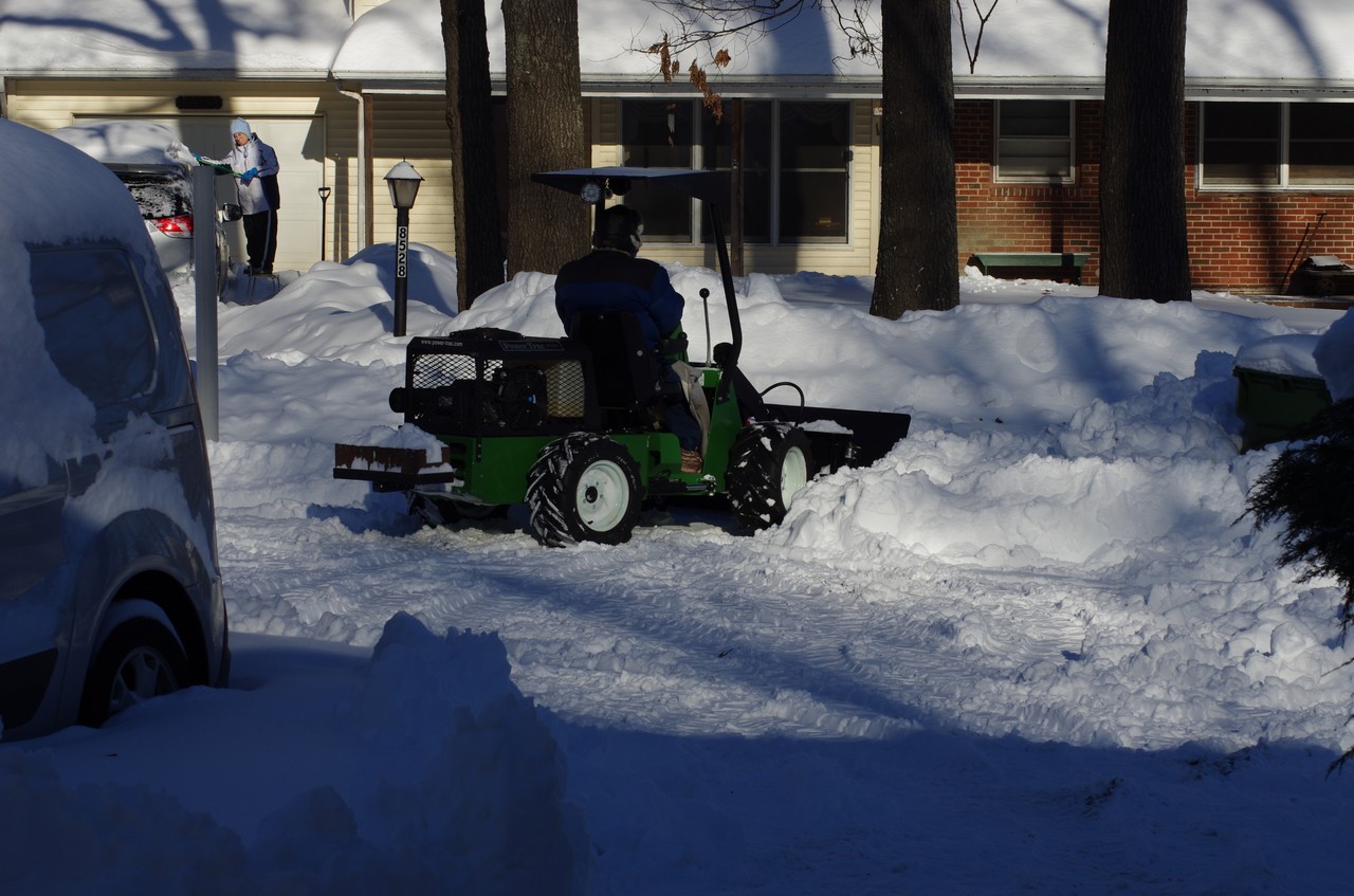You'll find the plow is much better than the buckets for snow because of the power angle and the plow doesn't get full like a bucket does. However, there comes a time (I've had it twice in 15 years) when you just plain run out of places to put the snow and you end up spending 3-4 hours some afternoon with the large bucket shuttling the snow from the front yard to the back yard just to get rid of the stuff!!! :laughing: