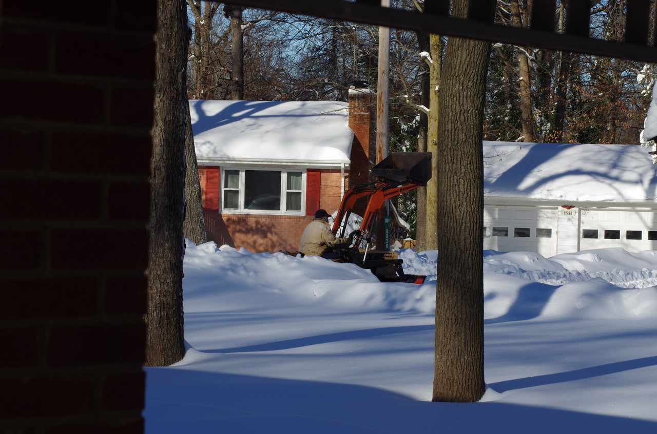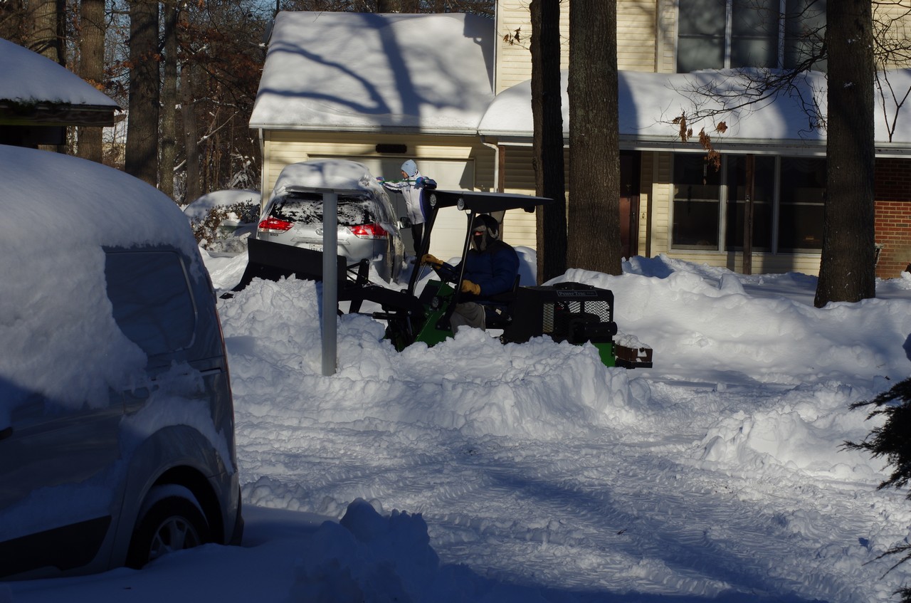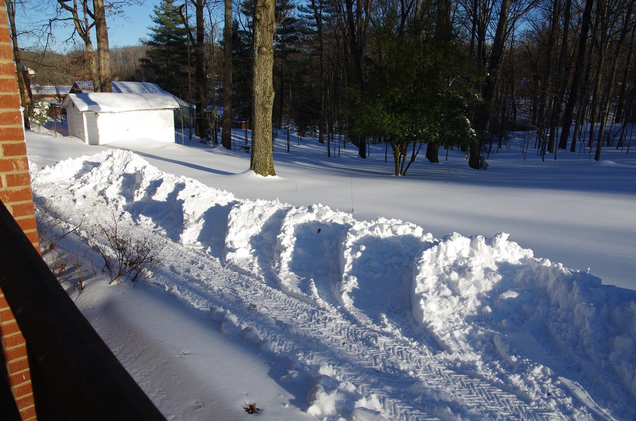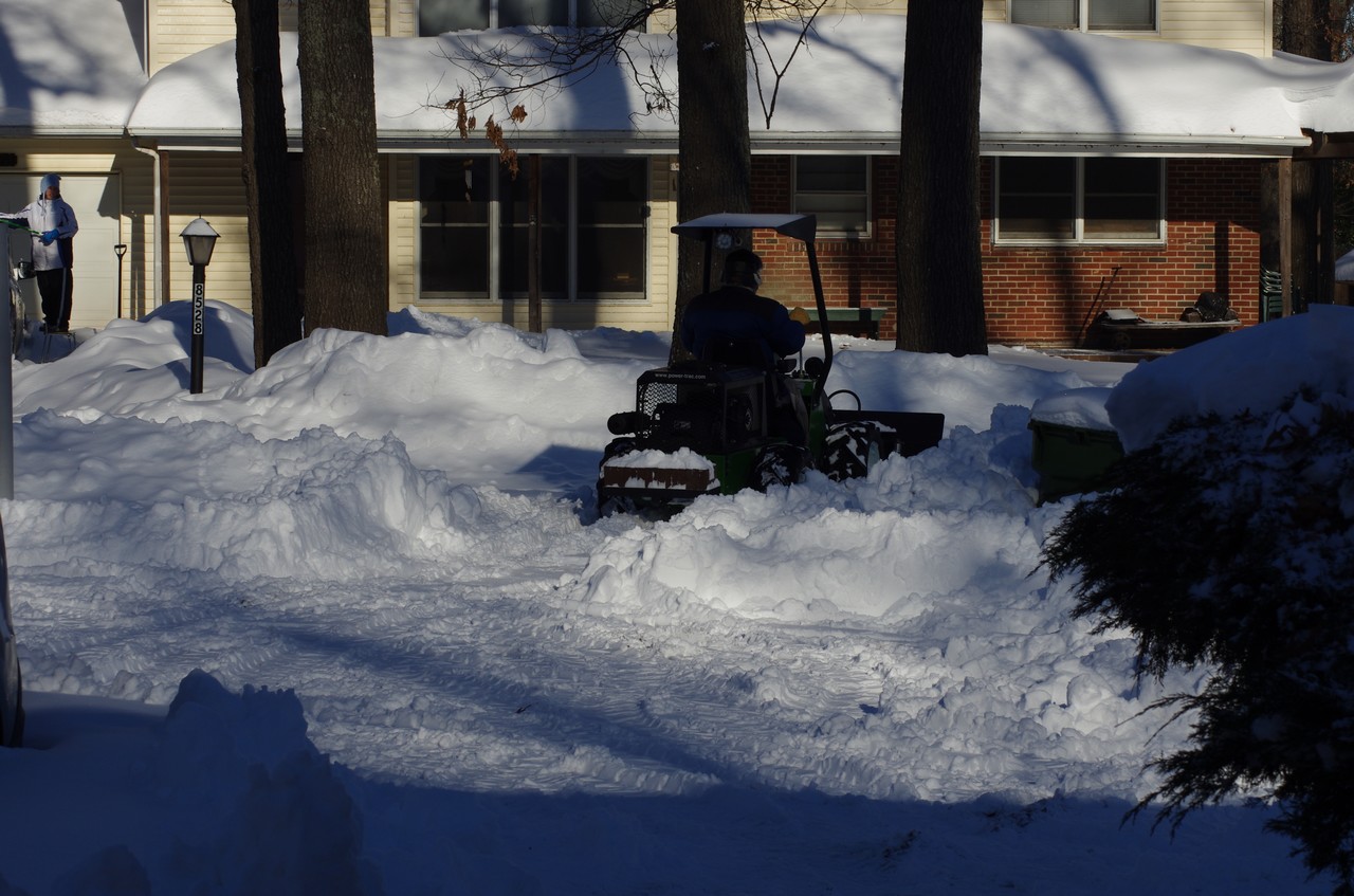 The snow I cleaned up today was about 20" on top of the first cleanup I did, and was REAL wet, so there was no plowing to it, mainly push about a foot at a time and then just lift the plow up and raise the stacks higher.