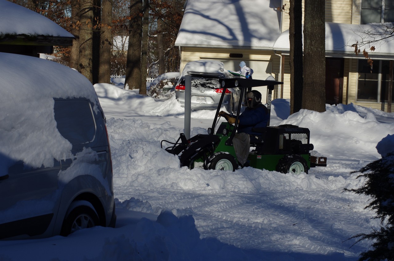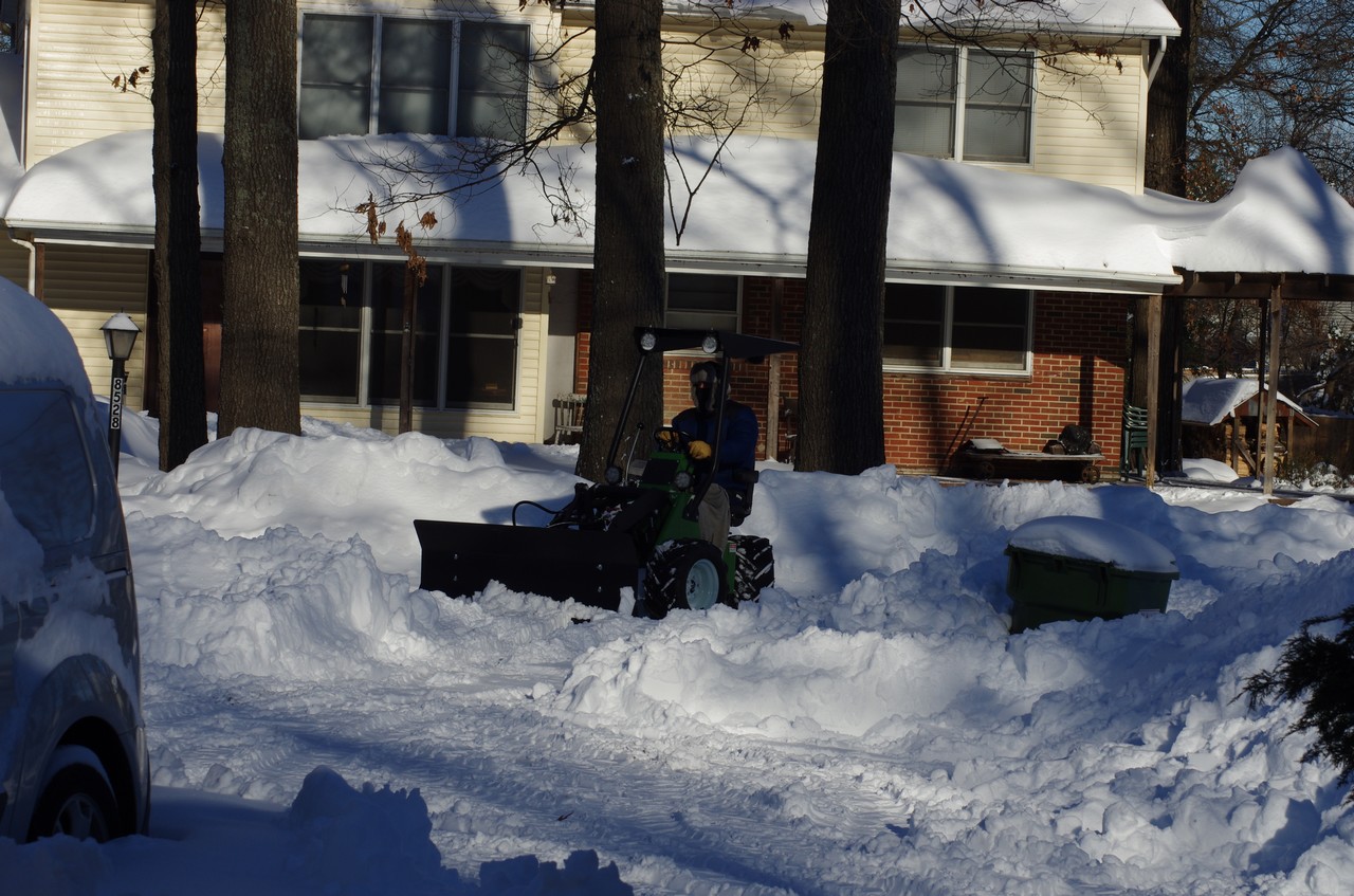 Here are a few thoughts after I did my second cleanup. The first round went well and there was about 10-12" and could plow it well, no crabbing or such. I have no chains on the machine, and after today don't think I will put them on there. I could see where it spun a lot on the tires, but a lot easier then having to chain up and mess concrete and other places I sit or place the machine.