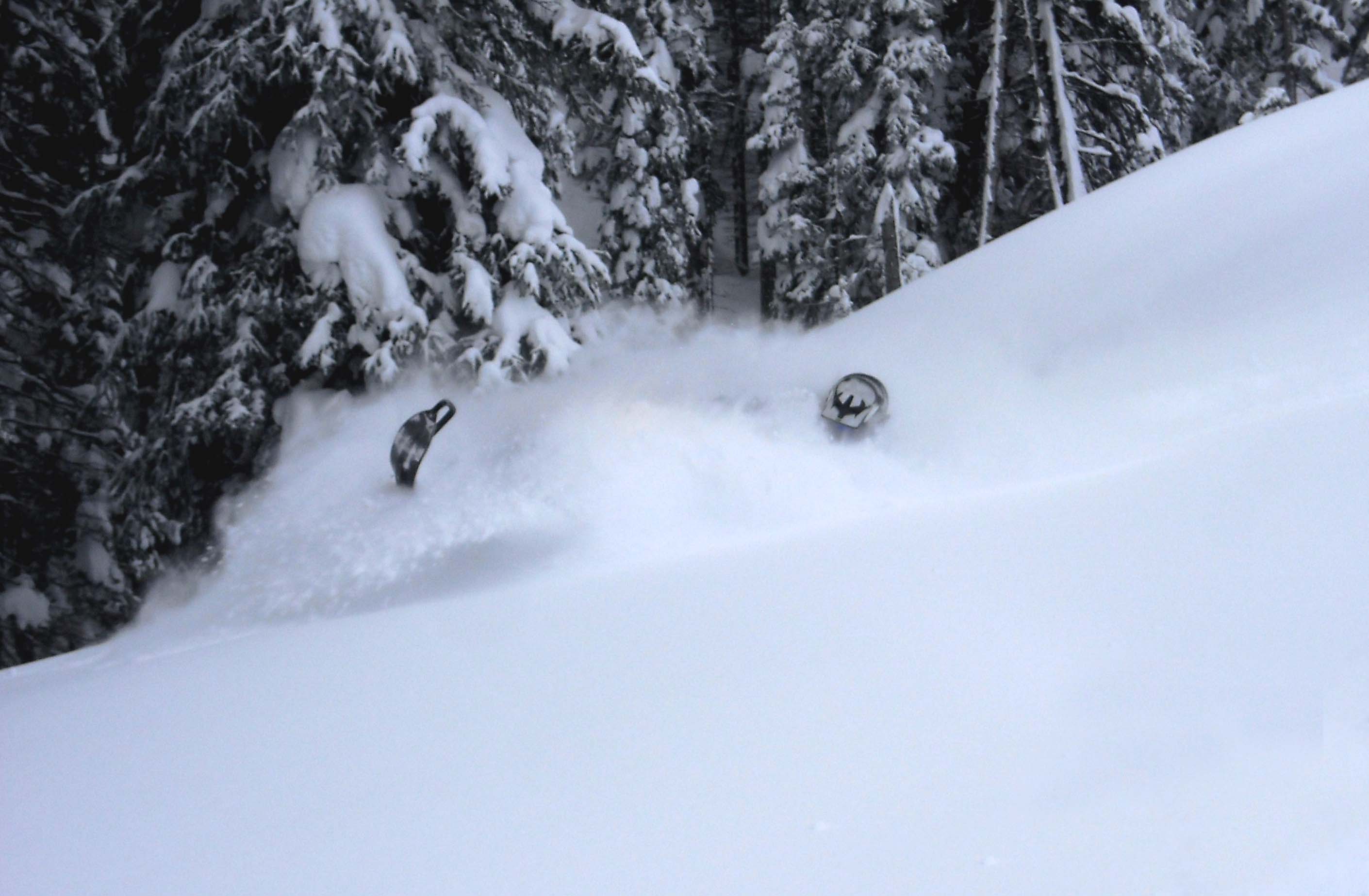 You would think so, the snow was awesome that day. My buddy took the picture at just the right time to catch me that deep in the turn. As luck would have it I didn't even get stuck.