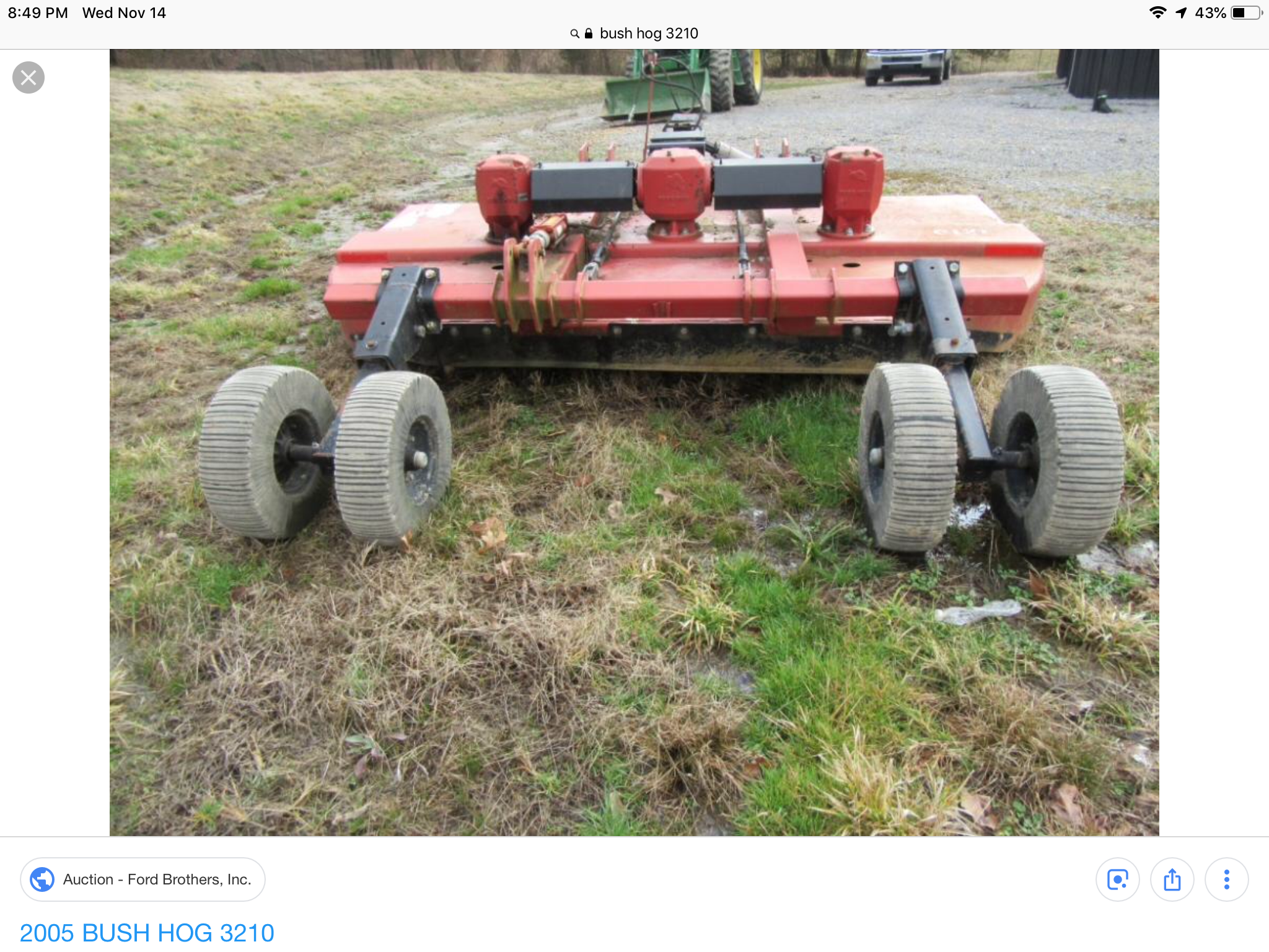 - Kubota M6060, Bushhog 3210, Deere offset disk, Deere B drill, forks, bucket