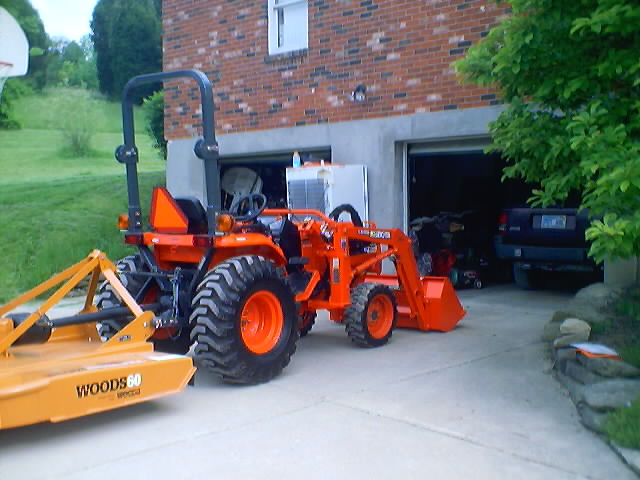I got to drive an exact duplicate of that a few weeks ago. It's smaller than my Kubota but it was sure fun to drive, all shiny and new. Ironically I saw it because I was buying a Woods mower from the guy. I chuckled when I saw your photo. It was a finish mower though, not a bush hog. He sold it because he also had a brand new zero turn mower in his garage. Must be nice.