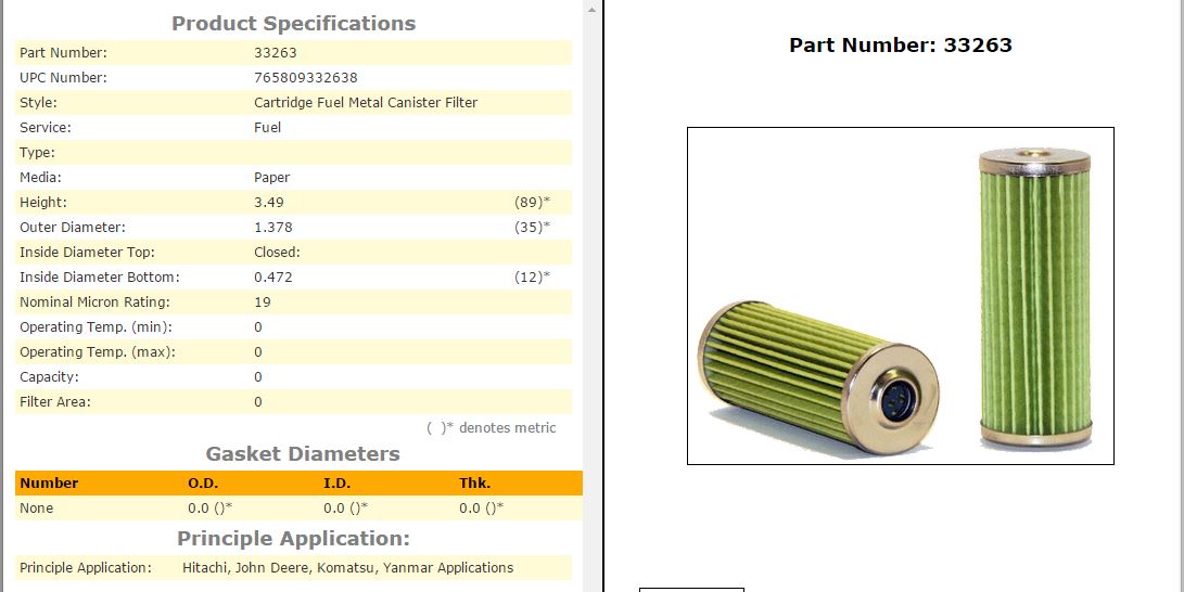 2520/2720/2032r spin-on cartridge filter, the screen separator is a Deere only filter and I can't get specs on that.