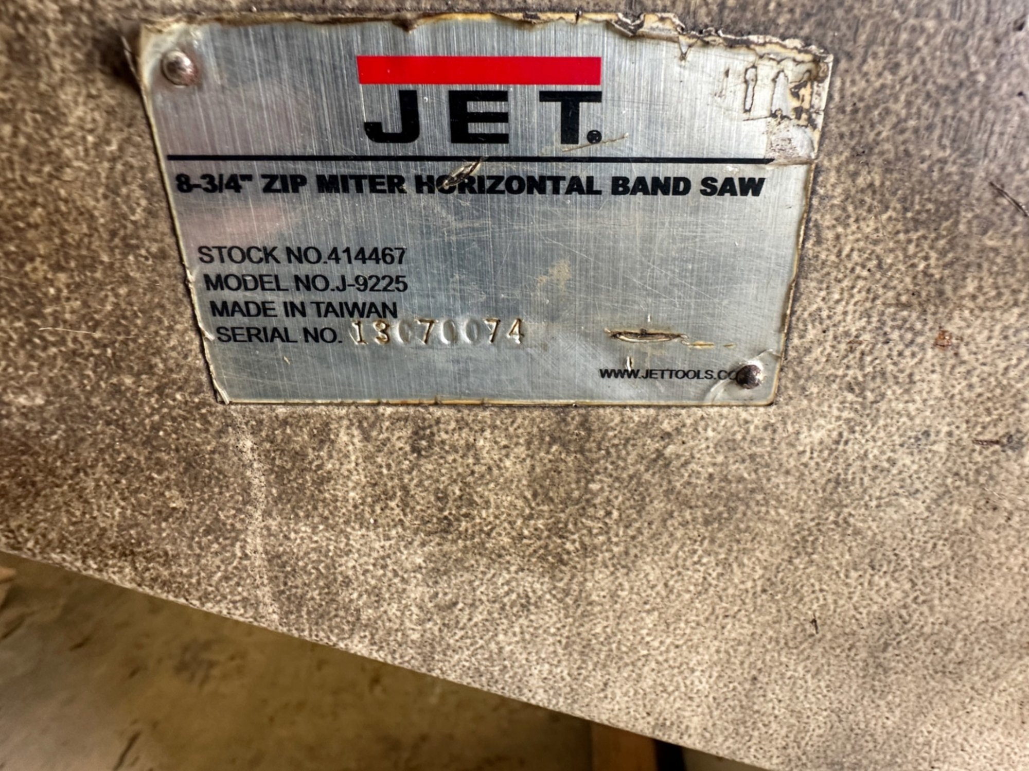 (Cleburne. TX) JET BAND SAW JET J-9225 8-3/4 ZIP MITER HORIZONTAL BAND SAW, STOCK# 414467, 230V 3PH, INDUSTRIAL METAL-CUTTING SAW WITH MITERING HEAD AND HYDRAULIC FEED CONTROL ITEM# 19575