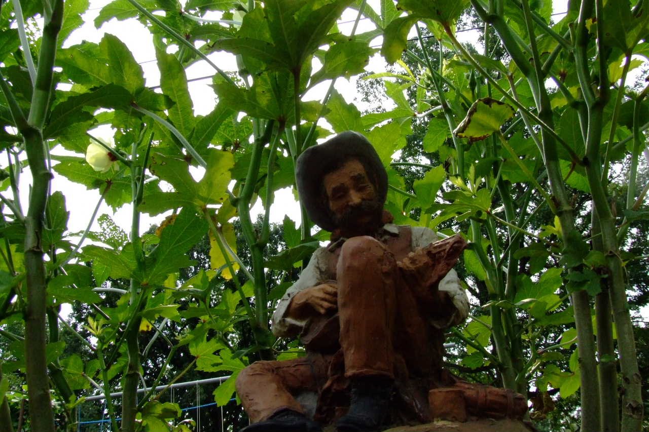 It's all about Okra & the lone Cowboy. Back on 07/10(post number 143) the lone Cowboy just fit under the Okra Canopy. Now, the Okra has really grown up!