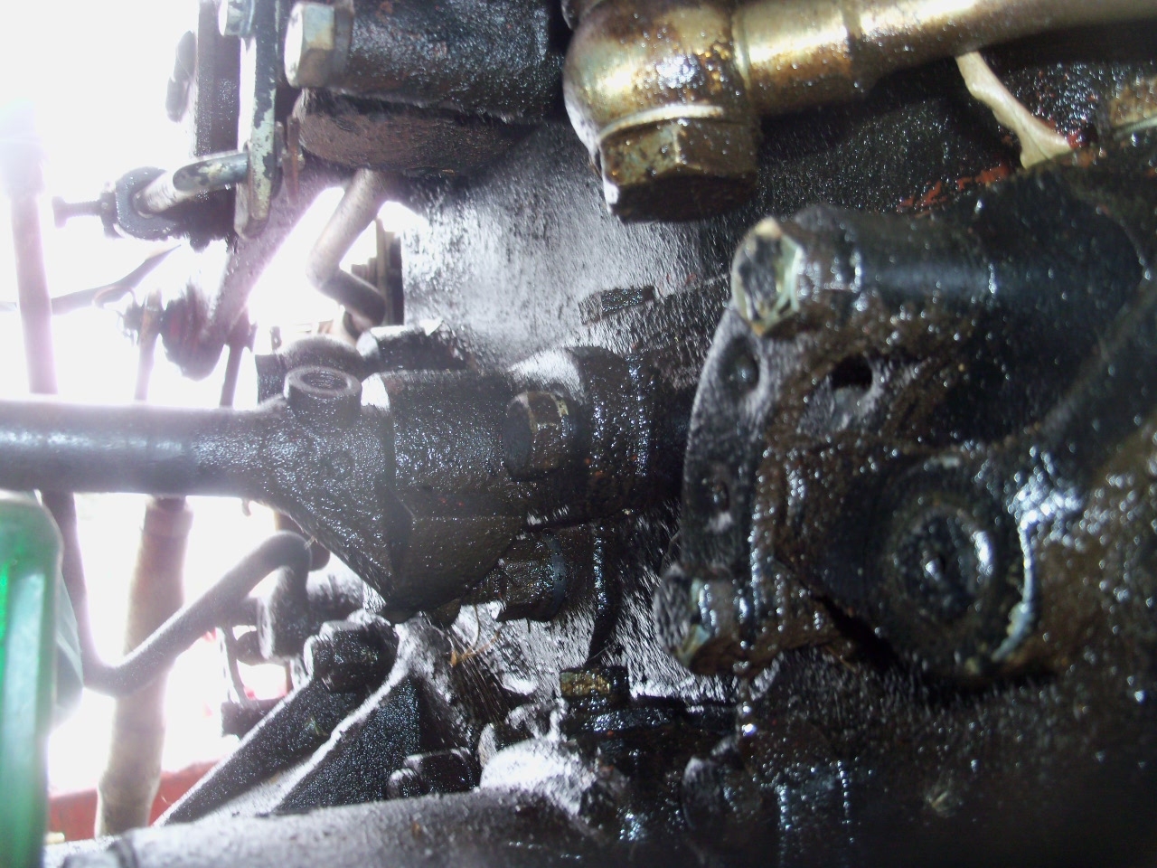 Here is a picture of my tractor with everything in place. This was taken in the winter after I had a hydraulic leak and it was too cold to wash off the mess. Also, I have modified my lever assembly by welding on an extension so that the lever is moved over closer to the fender. If you look closely you can see the very end of the shaft sticking out of the housing and the jam nut up against it. You can see that the shaft actually only travels about 1/4".