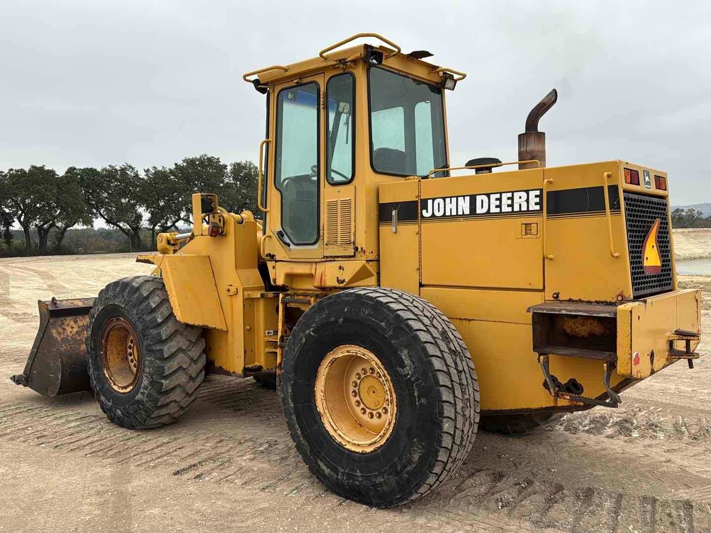 (Comfort. TX) JOHN DEERE 544G WHEEL LOADER VIN/SN: 540176, ENGINE: POWER TECH 6.8 LITER/168HP, METER READS 730 HOURS, ENGINE STARTS: YES, TRANSMISSION: POWERSHIFT 4 SPEED FWD AND 3 SPEED REV, 4X4, FRONT LOADER, 96IN EIGHT TOOTH BUCKET, ENCLOSED CAB, SINGLE JOYSTICK OPERATED BUCKET, TIRES: 525/80R25, APPROX OPERATING WEIGHT: 28,646LBS. ITEM# 20119