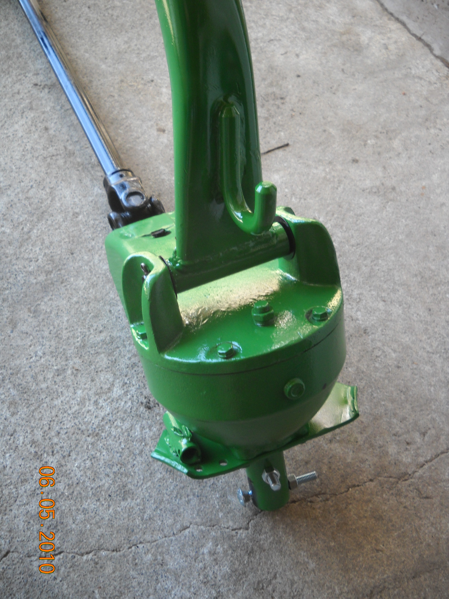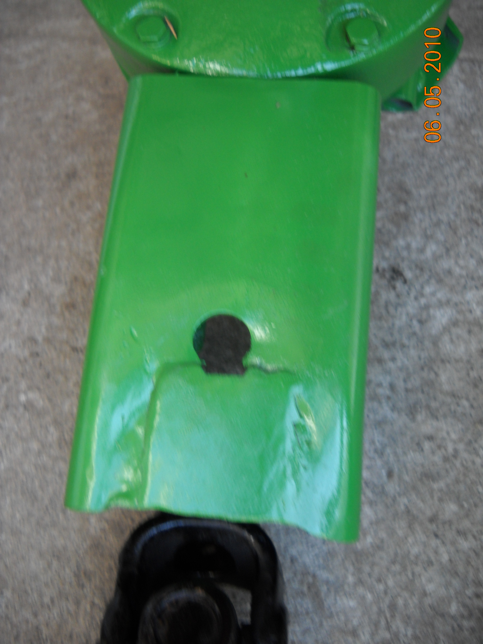 Oh, the stubs were fine. They are compleatly fine and i am glad they were because i cant imagine a new one would be very cheap. Since the frame and PTO shaft were a little bent, it caused it to rock my tractor when i used it. Now that they are both strait again, that should have fixed my problem. Anyways, I just put my auger back together. I think it looks pretty good for a $30 auger. I cant wait to get my new JohnDeere decals on thursday. Then i should be compleatly done with the restoration. I still am wondering what the two pieces of steel were for? Shown in picture 6, I dont see the point of them. i put them back on so i wouldnt loose them but I know they definatly were not for hydraulics because the 4100 Deere it was on had no rear hydraulic ports. Does anyone know what they are for?