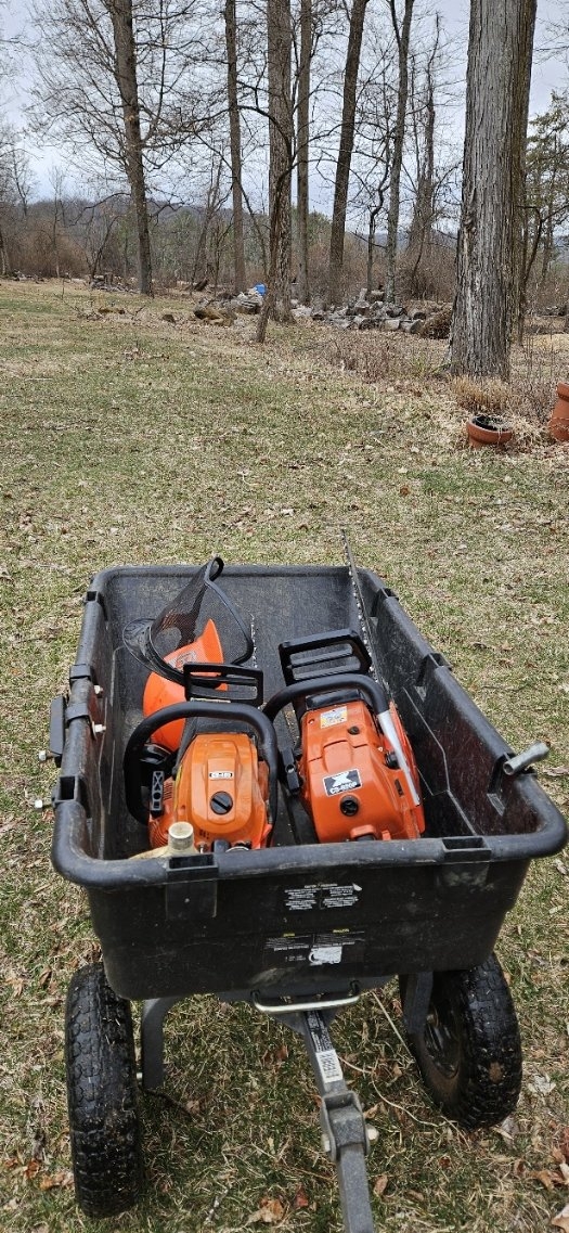 Both saws got a good workout today, on their way back to get cleaned and the chains sharpened.