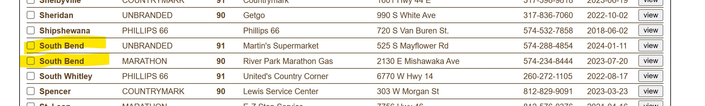The first one is the one I was talking about. I've been going to that local chain since I was born for groceries with my mom. The cashiers used to give me one of those suckers with the loop sticks. Grape!FYI, this site lists 2 stations. 90 and 91 octane, if accurate, you got the good stuff.