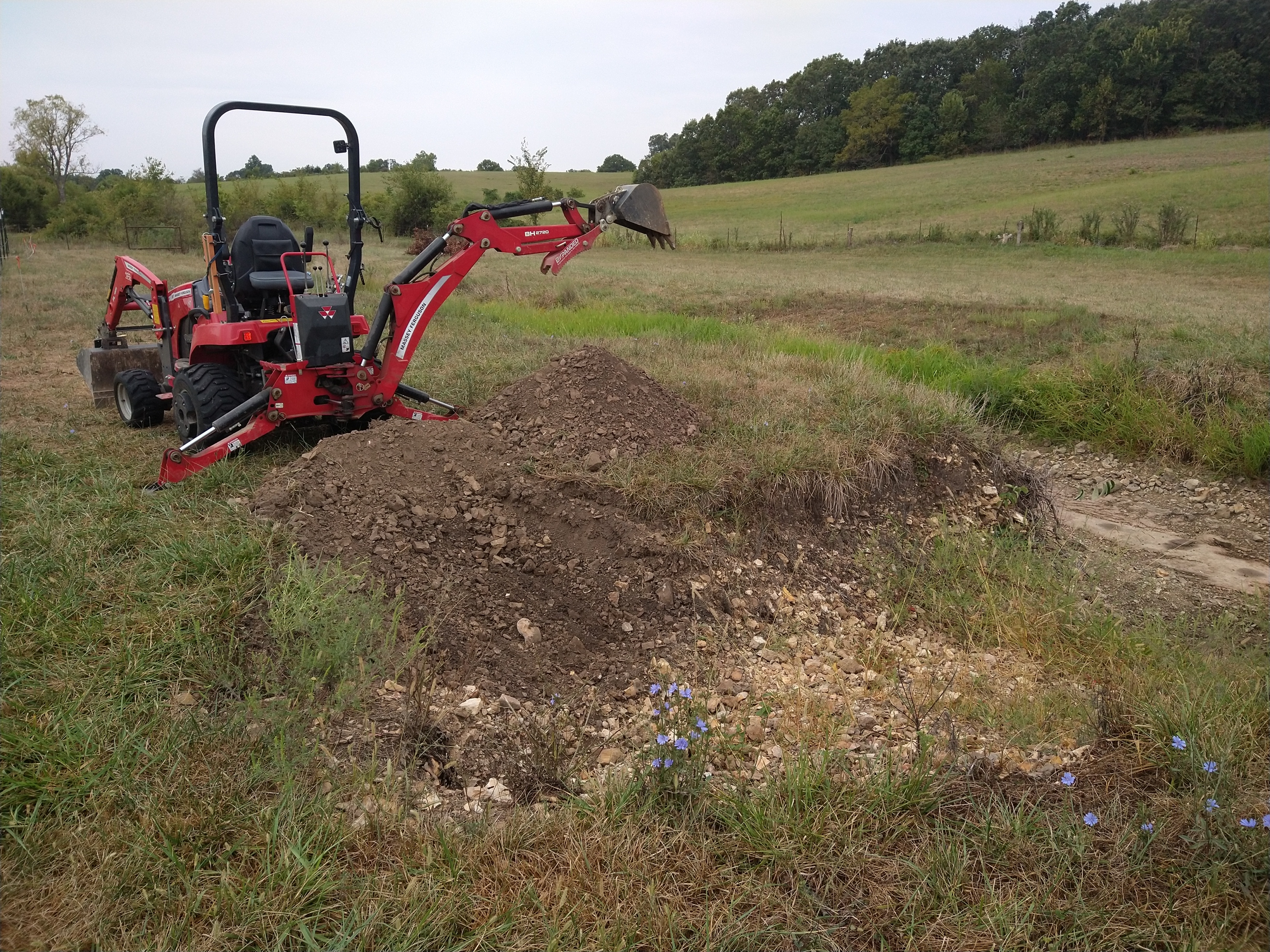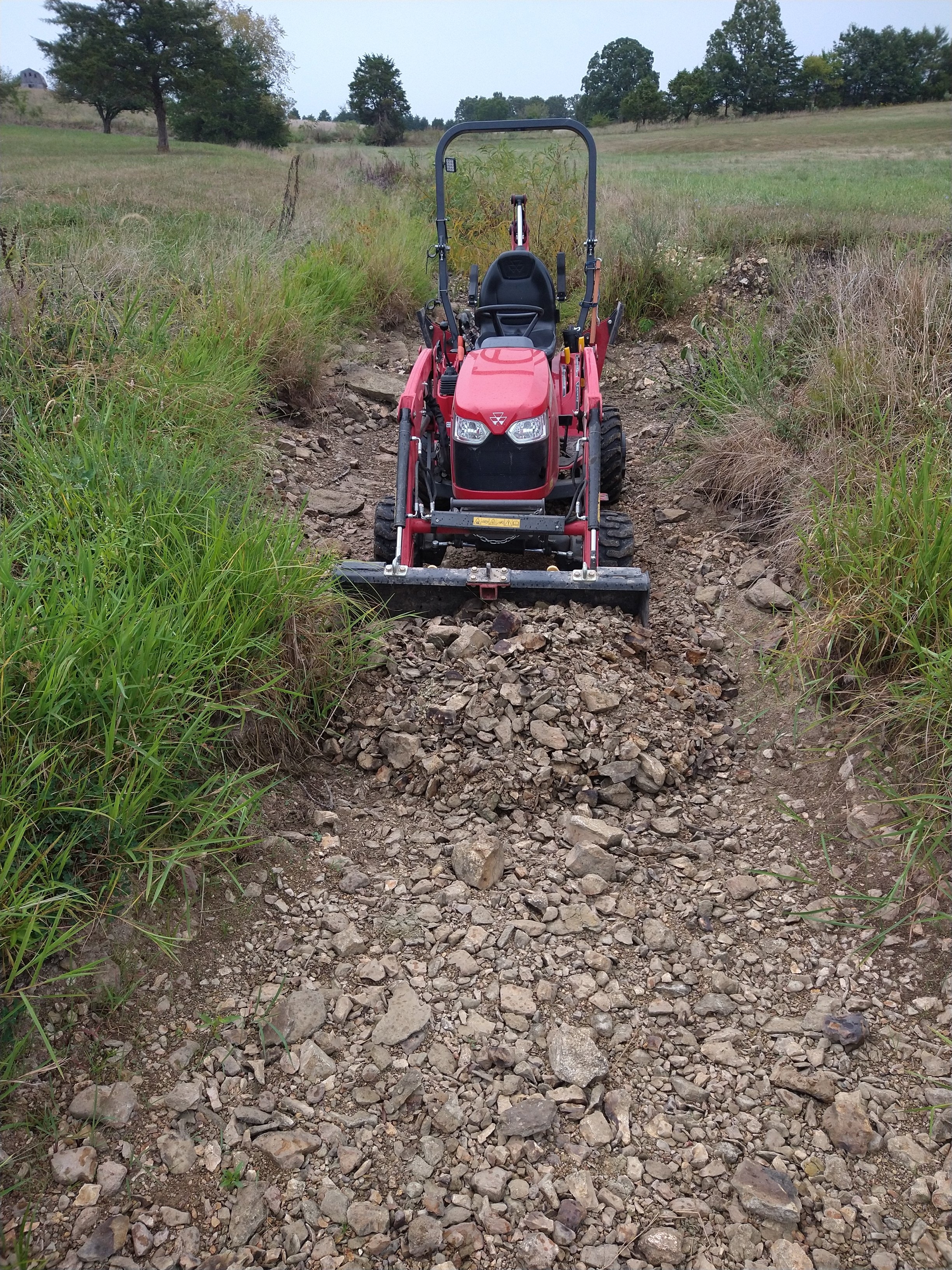 I got home late this morning, and put on the backhoe (BH) on my Little Baby Fergie as it was starting to sprinkle, I've only gotten .62ā of rain in the past 2 months, so it was very welcome, but I was hoping to clean out the creek that has been dry, and hopefully widen, and maybe deepen it, it has what I call ābedrockā that I have dug down to before with the BH, but it's like sand stone . . .
