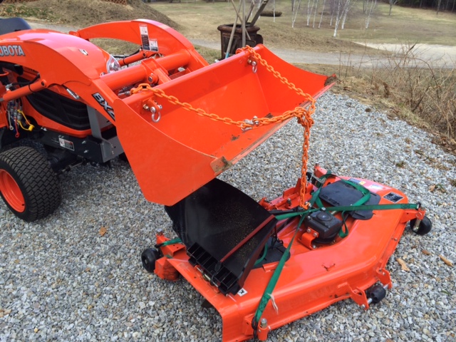 First job for new bolt on hooks...had to lift my MMM to get my Craftsman tractor out of the shed to sell it...They will come in real handy for lots of tasks!