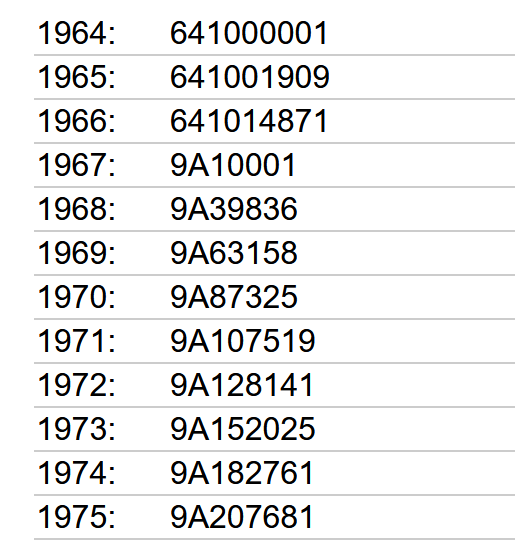 I located several charts to determine year but need help deciphering the serial number which is SDW641018169. Reading the various charts, I read it could be anything from a 1966 to 1973 depending on how its read. Pictures of the various years have not helped at all.