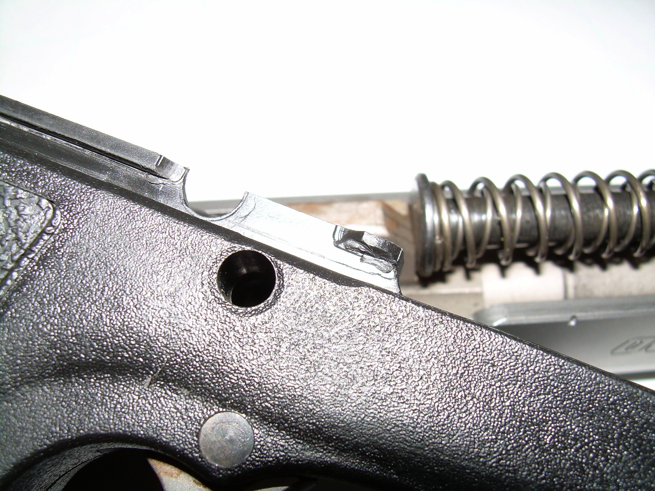 Took it apart when I got home and didn't like what I saw the poly frame rail on the right side looked chewed up in a couple of spots, there is metal molded in at the front and rear but I didn't like the look of the plastic rail, also on the same side looks like a manufacturer defect, like a fissure right under the shoulder of the slide.