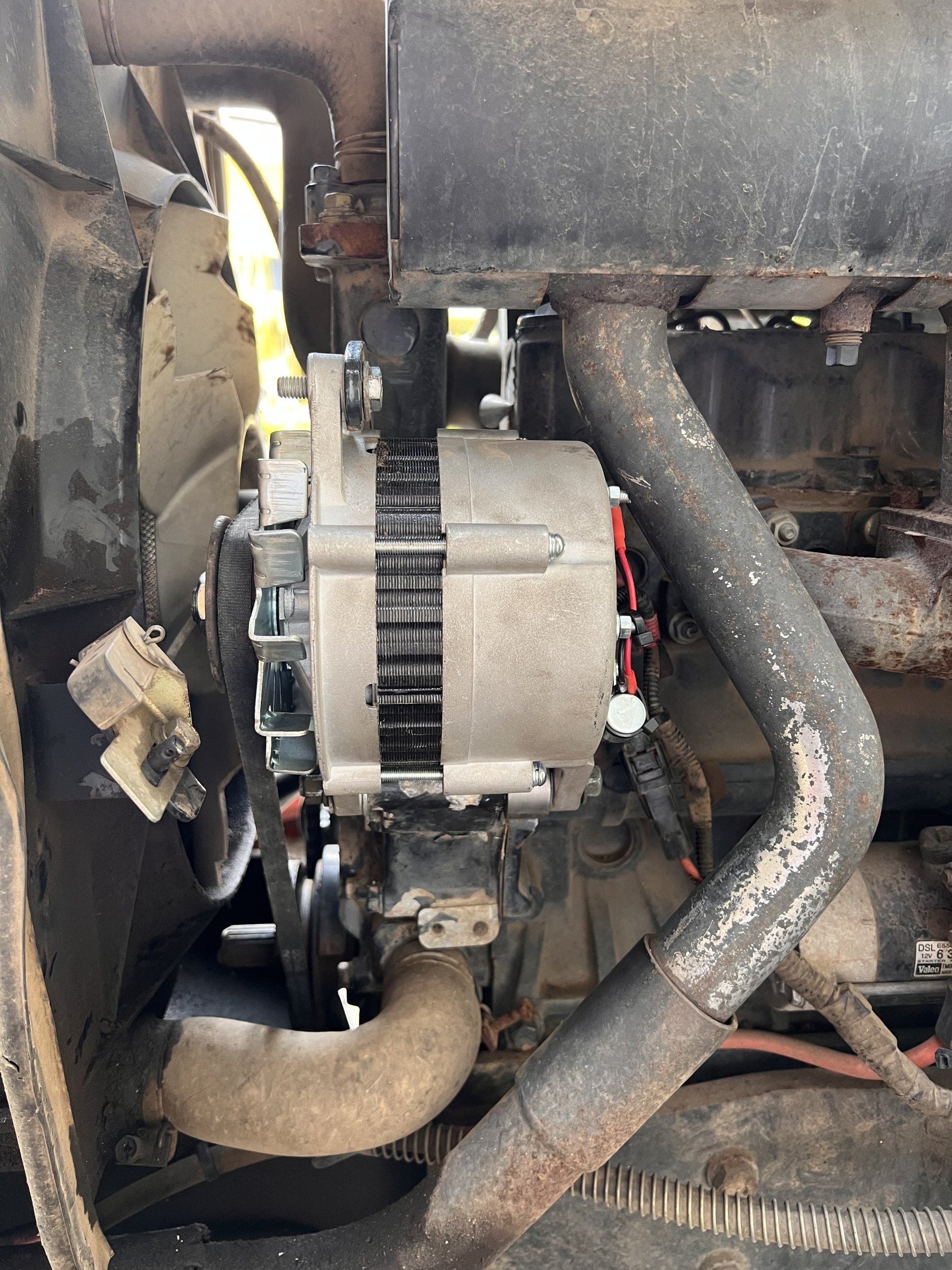 A couple of installation suggestion! I found that it was easier to set the belt in the alternator pulley before bolting the alternator to the mounts. To properly align the new alternator pulley, be sure to install the OEM bolt shim in front of the lower mount. The 2 wire plug on the back of the alternator is correctly wired for the Kioti and the Kioti plug will plug right in. While you have the plug off, check for corrosion. My original alternator died due to corrosion in this plug (the sensor wire could not read battery voltage correctly). This caused the alternator to continuously overcharge the battery and eventually killing the alternator!