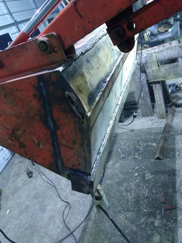 Finished back, here you can see the piece that I put on the heel the bucket to act as a wear plate as well as the backside of the cutting edge: