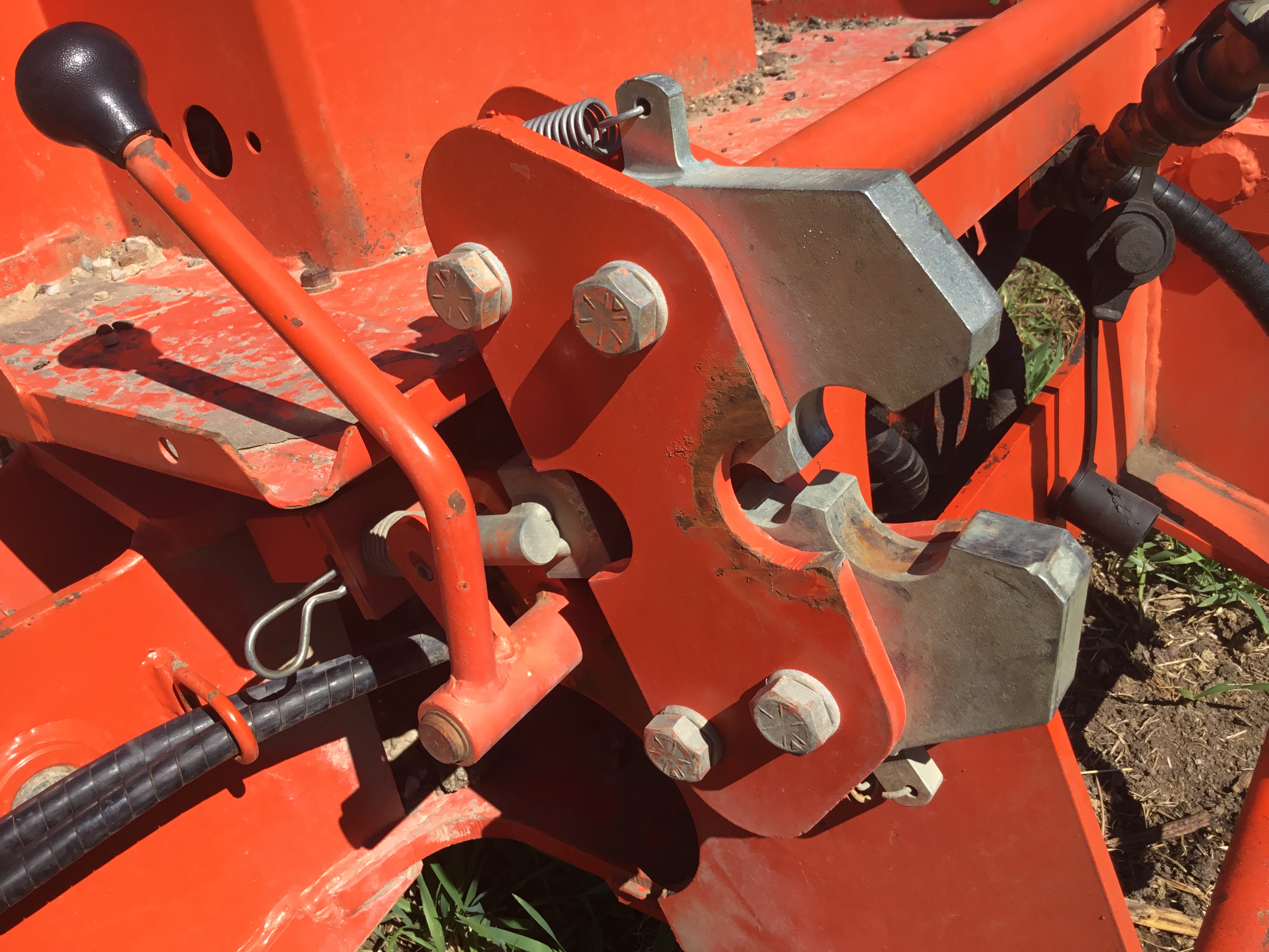 I've removed and installed the hoe a dozen times since then (to attach a woodmaxxchipper), and I can remove the hoe in a couple of minutes now. Installing it takes a little longer because aligning the hoe with the tractor takes a bit of time. Maybe this technique will work for your machine too.