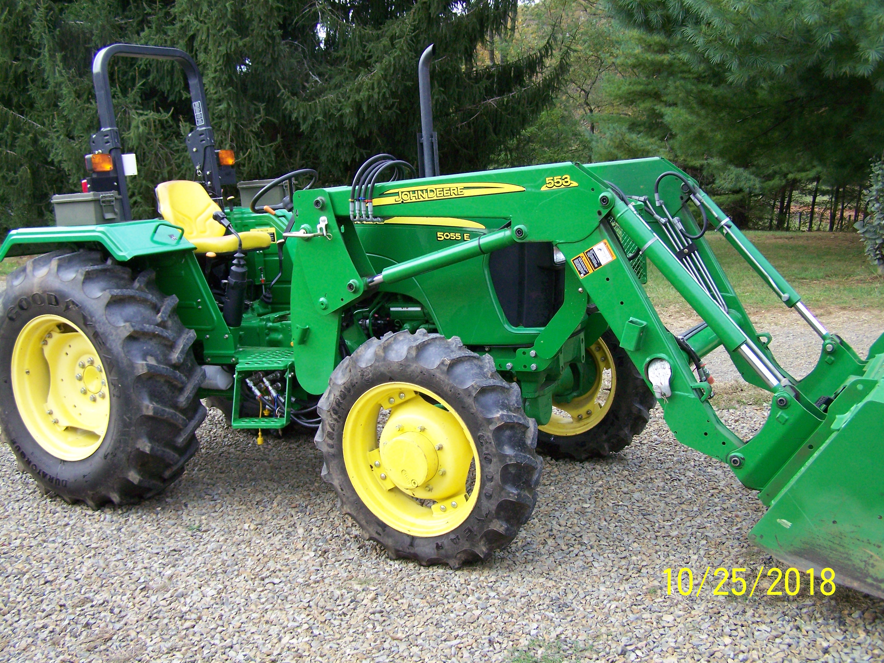 Both machines are a little different than the other machines in their respective manufacturers' lineups. All Deere 5E 3 cyl tractors are the same size, can be had with the same size tires, use the same loaders, and use the same basic engine but the 5045E is the oddball as it is only available in an open station with the 9/3 TSS transmission. The other 5E 3 cyl units (5055E/5065E/5075E) can be had with a cab and/or the 12/12 PowerReverser. The