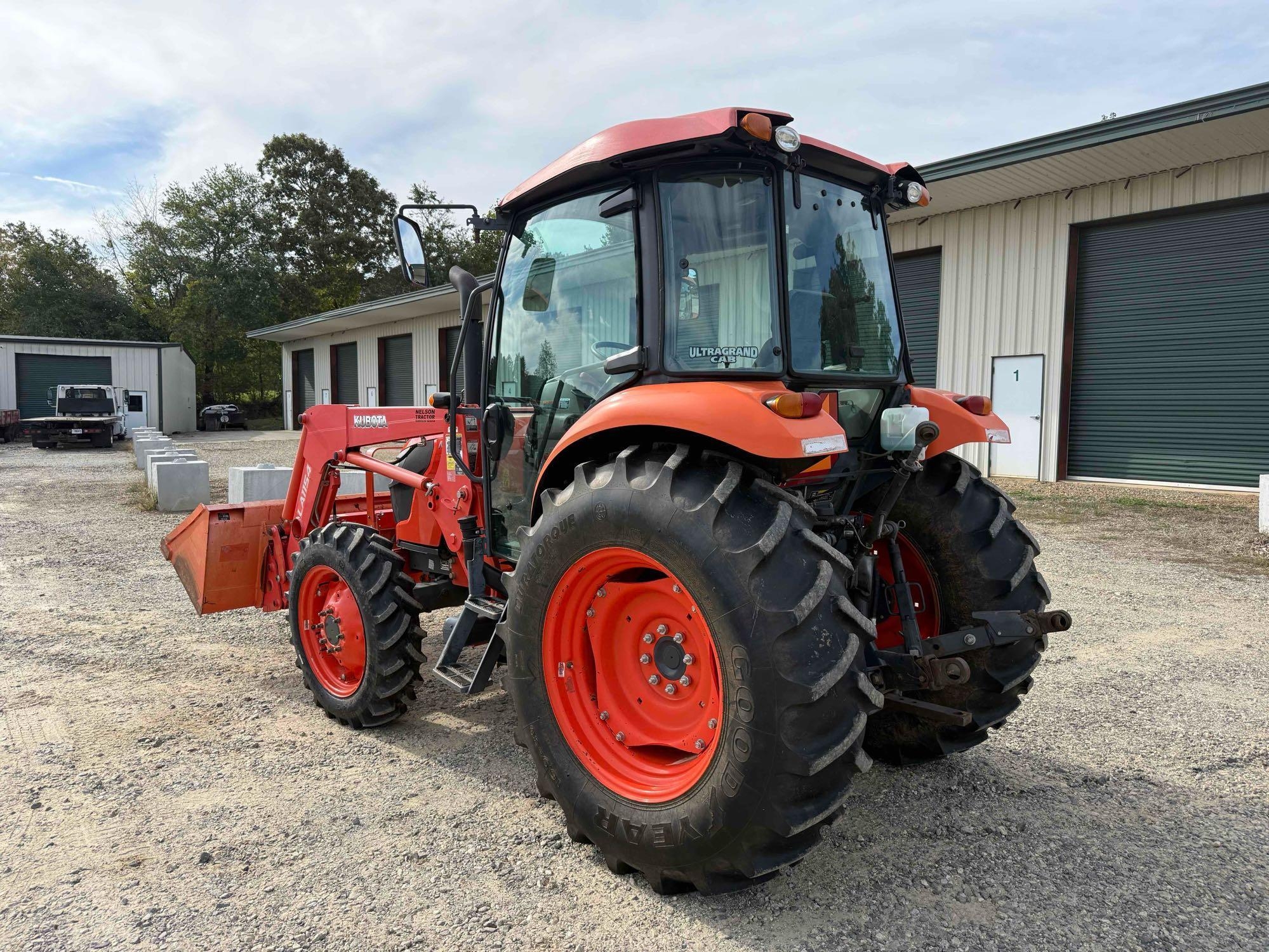 Located at Blairsville, GA Lot - Kubota M7060 - 4x4 - Enclosed cab - Heat/A/C/Radio - Kubota LA1154 front end loader with bucket - Quick attach hookup on loader - 540 PTO - Hours: 1604 - Dual rear hydraulic remotes - Serial: 67329 - Local farmer owned - Runs/Operates - No known issues