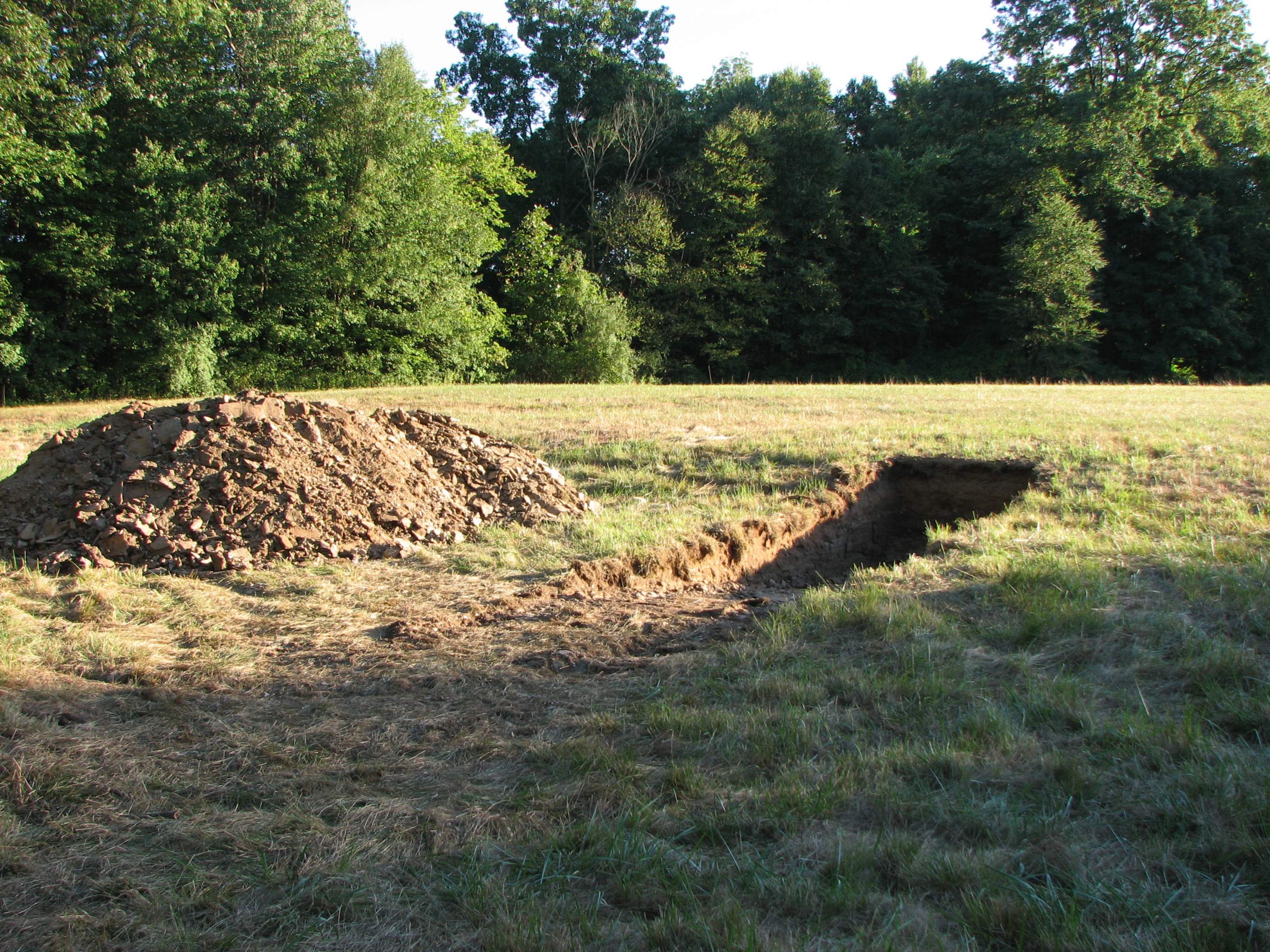 Looking at Baby Grand's pic, you would have a harder time, and more time spent getting in that hole with a narrower bucket than the tractor's width since you would have to work on either edge to get on down in there..