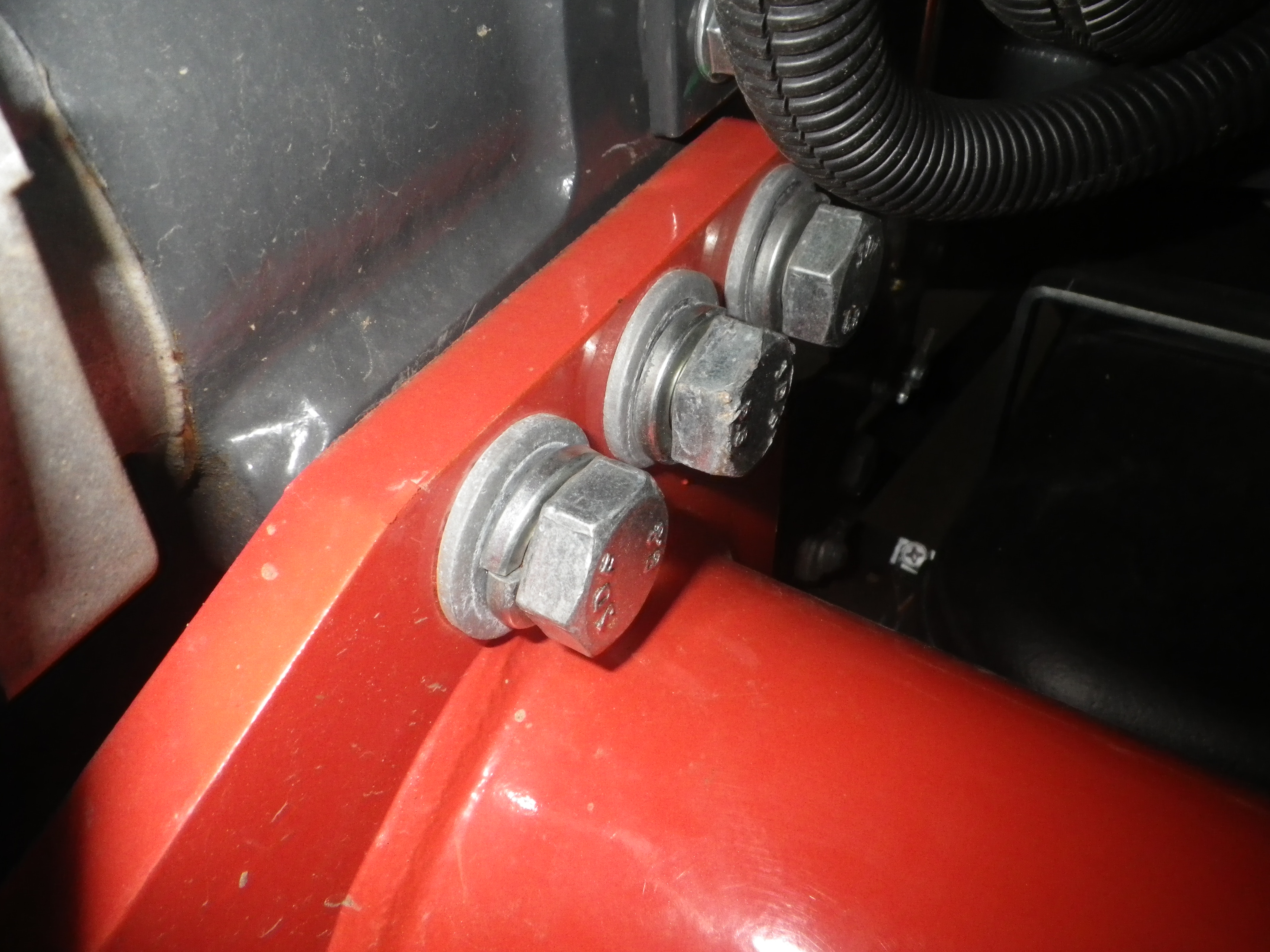 Loose bolts everywhere actually some falling out. Makes me angry to see poor dealer prep on a machine like this. Alternator belt loose, alternator wiring touching exhaust manifold.