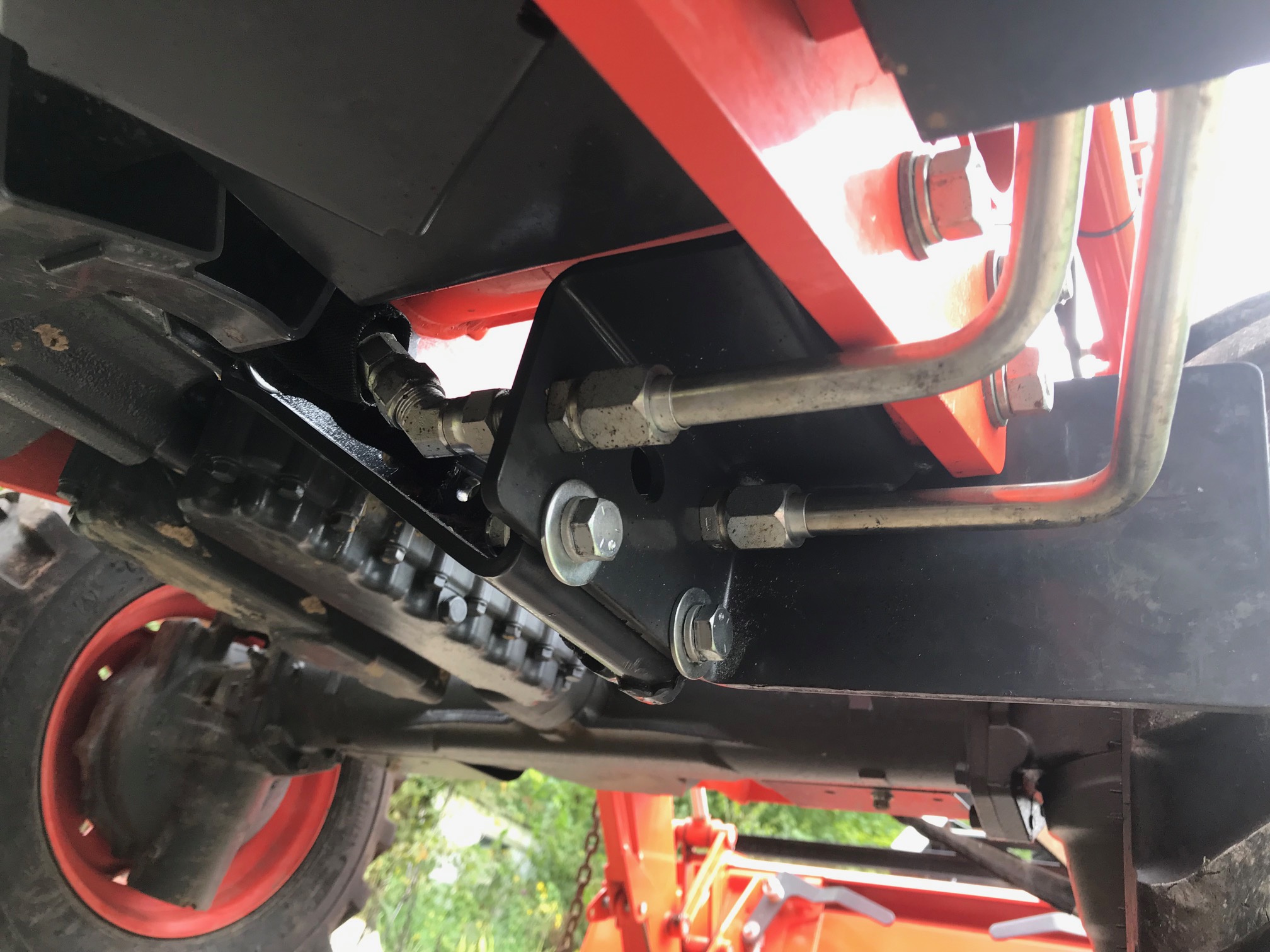 Hilbilly - there is a DEFINITE difference between the routing on my 2009 M6040 and your 2019 L6060. My hydraulic lines come out on the side of the transmission case - and are routed UP and on the inner side of the FEL rear post. There is still the shield - like you built. But nothing hangs down quite like the shield as shown in your one picture. Mine is a WR Long third function and was installed by my local Kubota dealer.