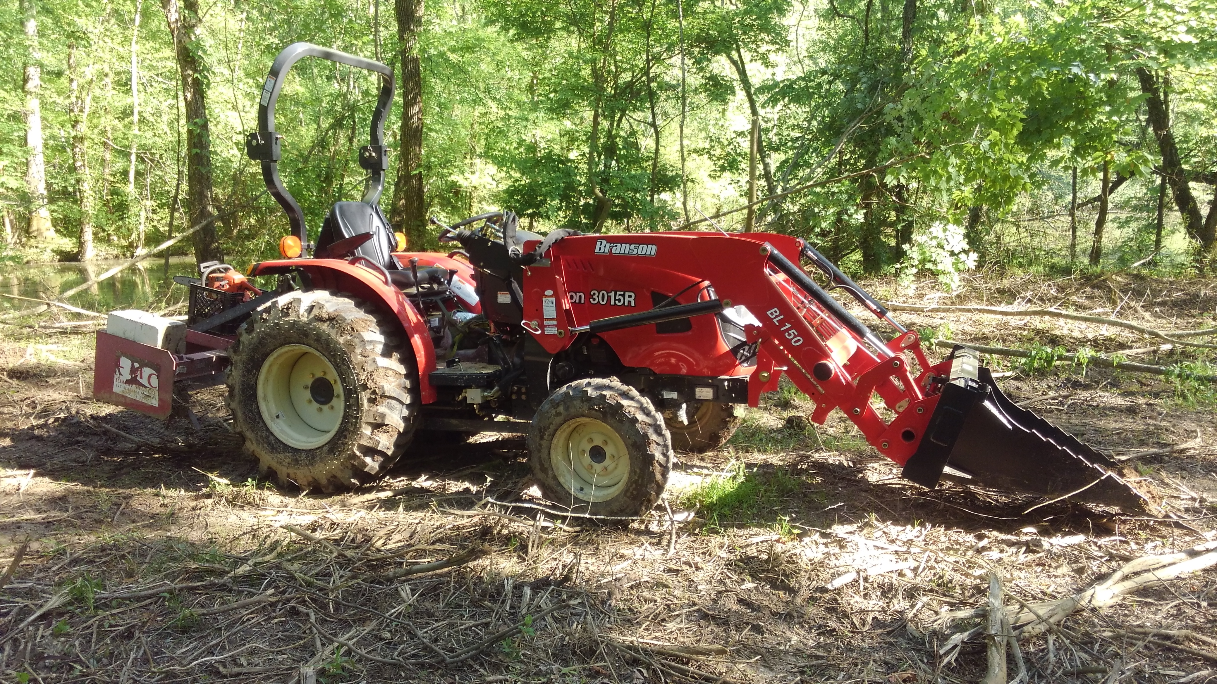 Bought a MTL Attachments stump bucket to help me clear some land. The 3015 did really well with it. We were able to clear about 20 3-6" trash trees in about 1.5 hours. Now I need to get my diverter kit hooked up so I can use my new root grapple to clean up my mess. Here is my mean machine.
