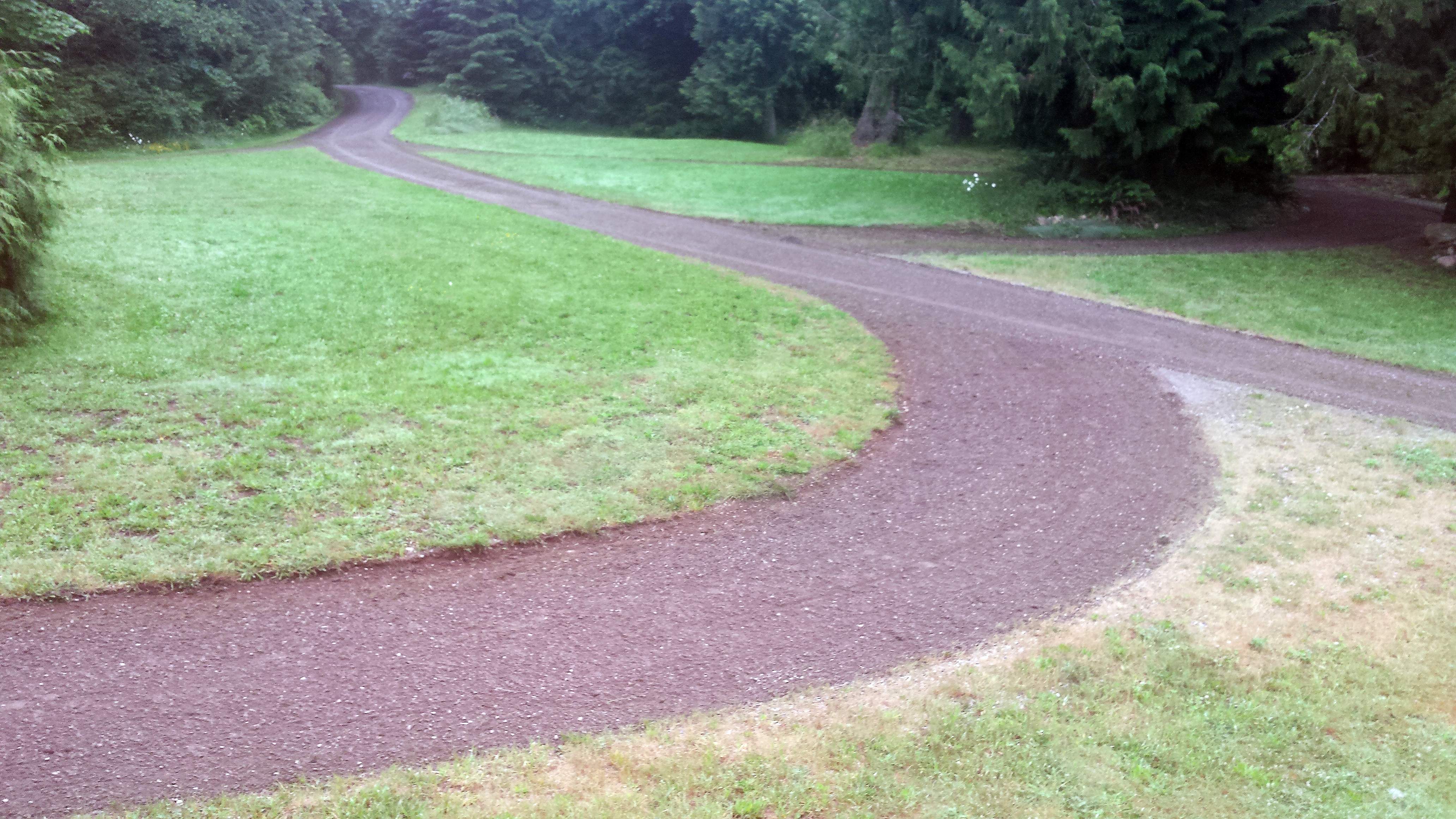 Here is a picture of my driveways after yesterday's 'tune-up' of my hard packed gravel during some damp weather ...