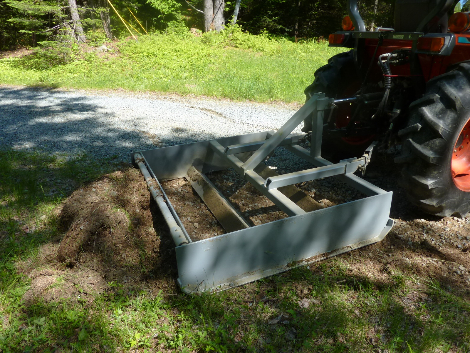 If I hang the gate in front of the pins I can use the grader to collect and move material like a box blade.