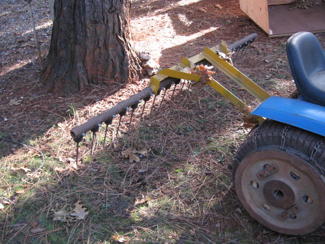 There is a thread that was started back in 12-14-2007 Good Landscape Rake Cheep. I am going to build another 3pt. hitch for it and here is the area I need some input on. I have a Kubota B2630 I would like to have the rake at least 12" or more from the back of the 3pt. so I can have a nice area in back of the tires for a nice size pile of leaves.The rake it self will be 6' wide with tines 3" apart