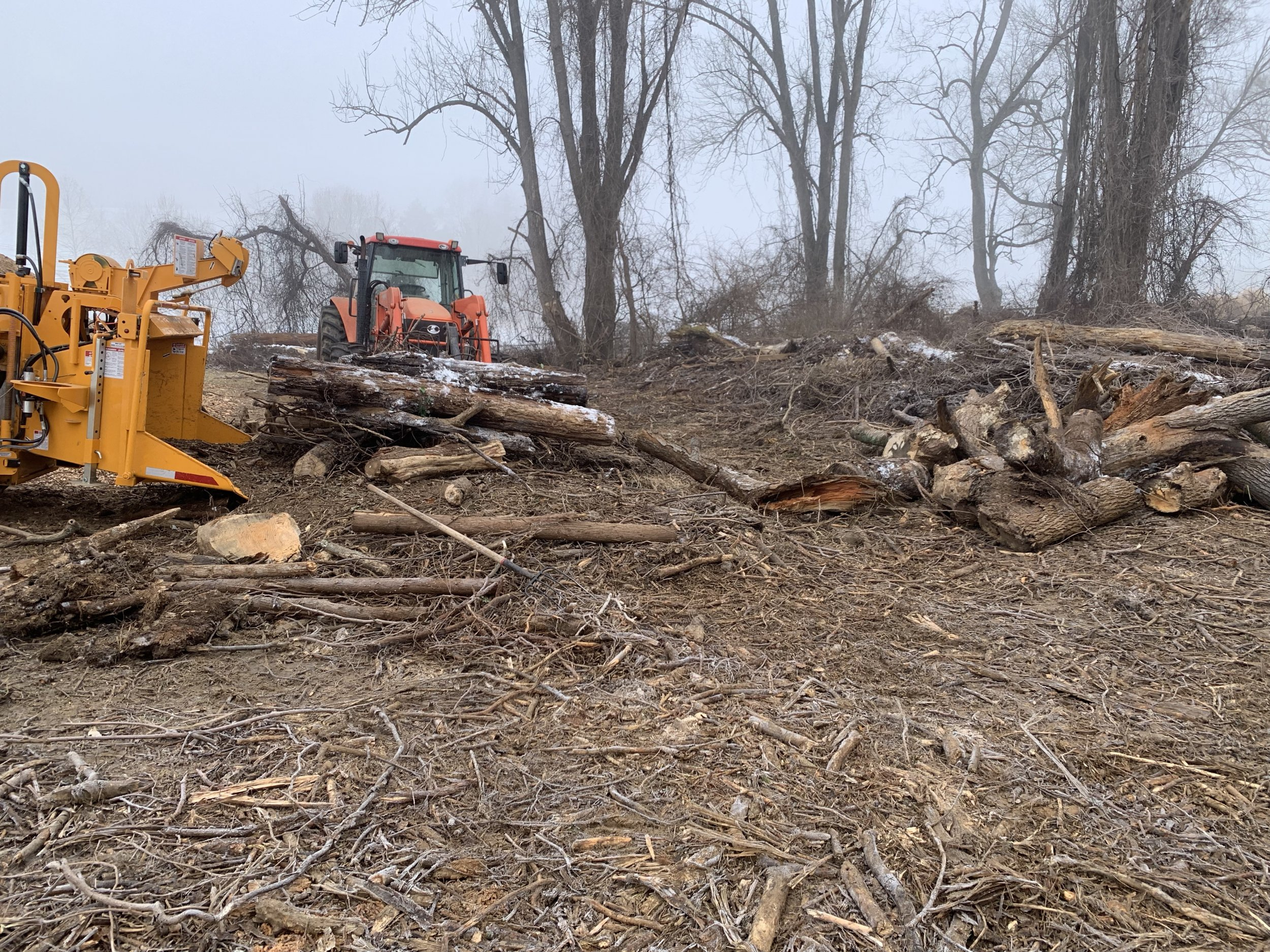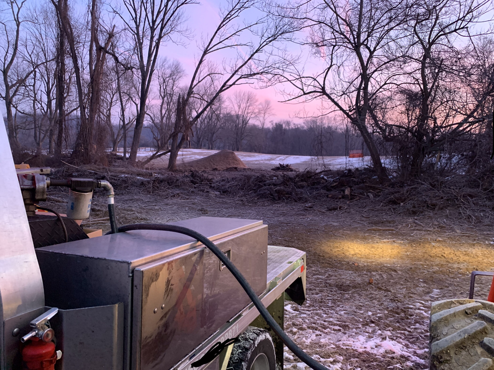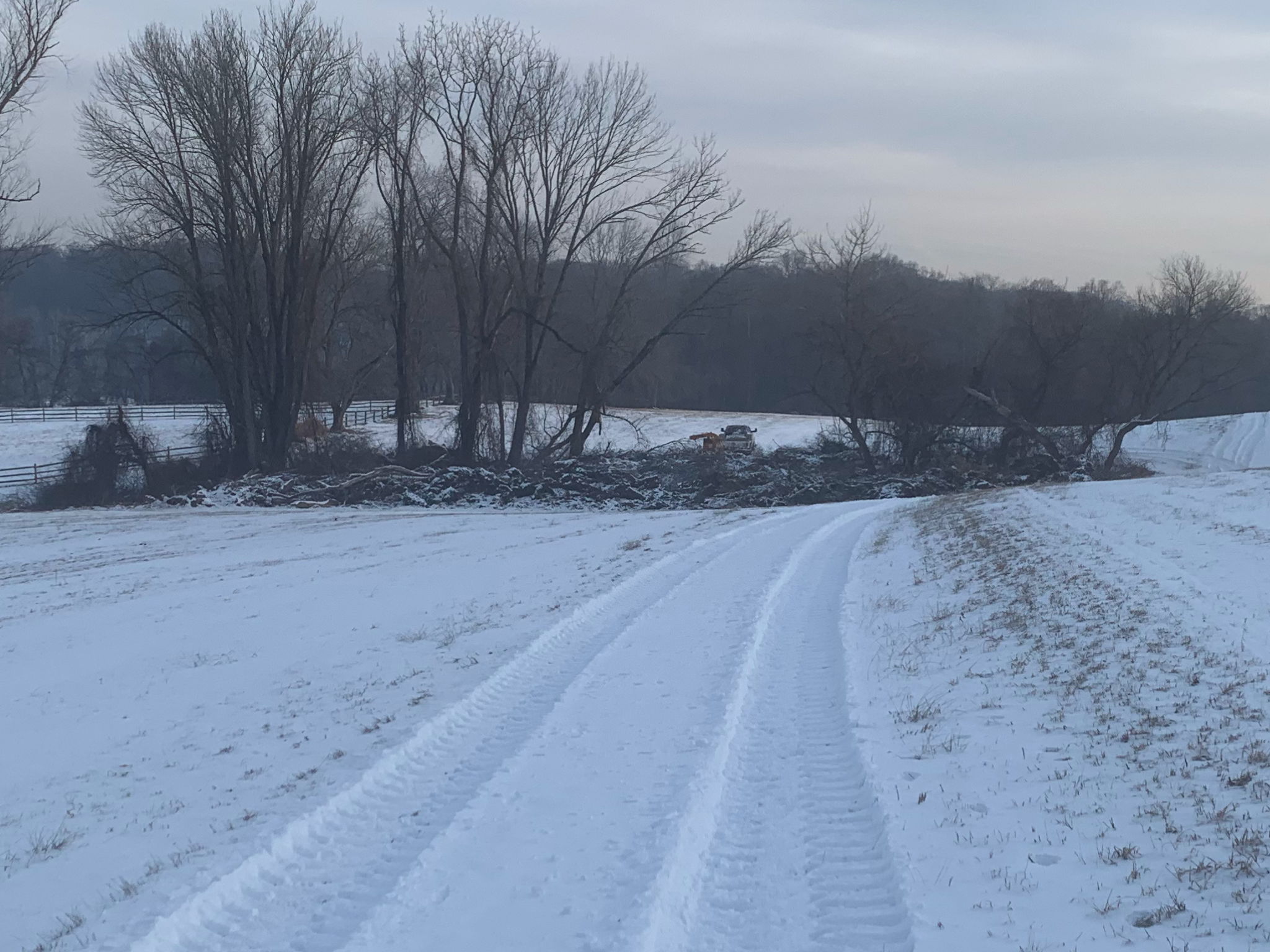 Back to the side where picture #1 was taken. You can see after a couple days. The clippings pile is huge. I’d estimate 2-3 triaxle loads. But we are making progress. It was pretty cold. Usually mornings were about 15-16* Thank the Lord for glow plugs! Lol