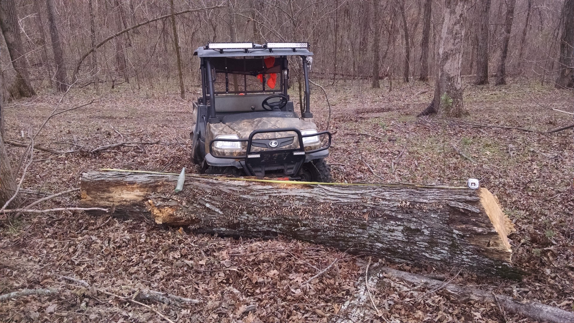 The end of the tape measure is right at 13' at the top of the face cut and the bottom cut is right at 14'; I'm gonna call this one 13.5'. 24" top end, 28" at the bottom; 3,375 lbs according to the woodweb calculator posted above.