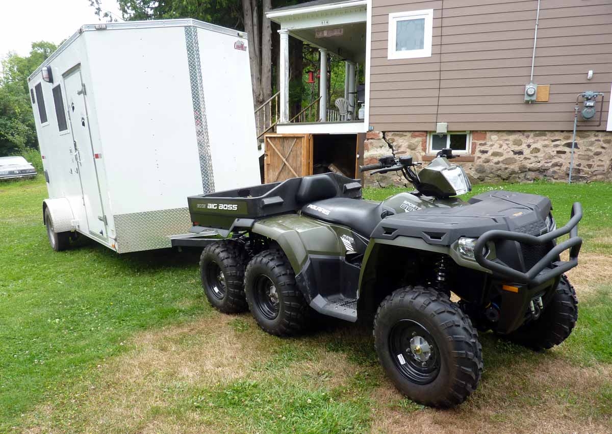 I would think that an ATV(but I don't own one of those things)would not be a good choice for learning to back up a trailer. Now, don't get me wrong, yes it can be done, but in most cases backing the trailer in a vehicle driven on the road, the mirrors are the things you would be using, and most (yes, an assumption) ATV do not have mirrors, and if they do, they will not be wide enough to be able to see down the sides of the trailer. You can look over your shoulder and see what the trailer is doing, but you won't ever be able to back the trailer into a blind hole very far, without being able to see the sides, as you are blinded by the trailer being wider than what you can see. Even using mirrors become worthless once the trailer starts to "bend", which is when the driver looks out the window. (or in the case of a Peterbilt with stacks right behind the doors, why a lot of drivers open the door and some actually walk out onto the step).