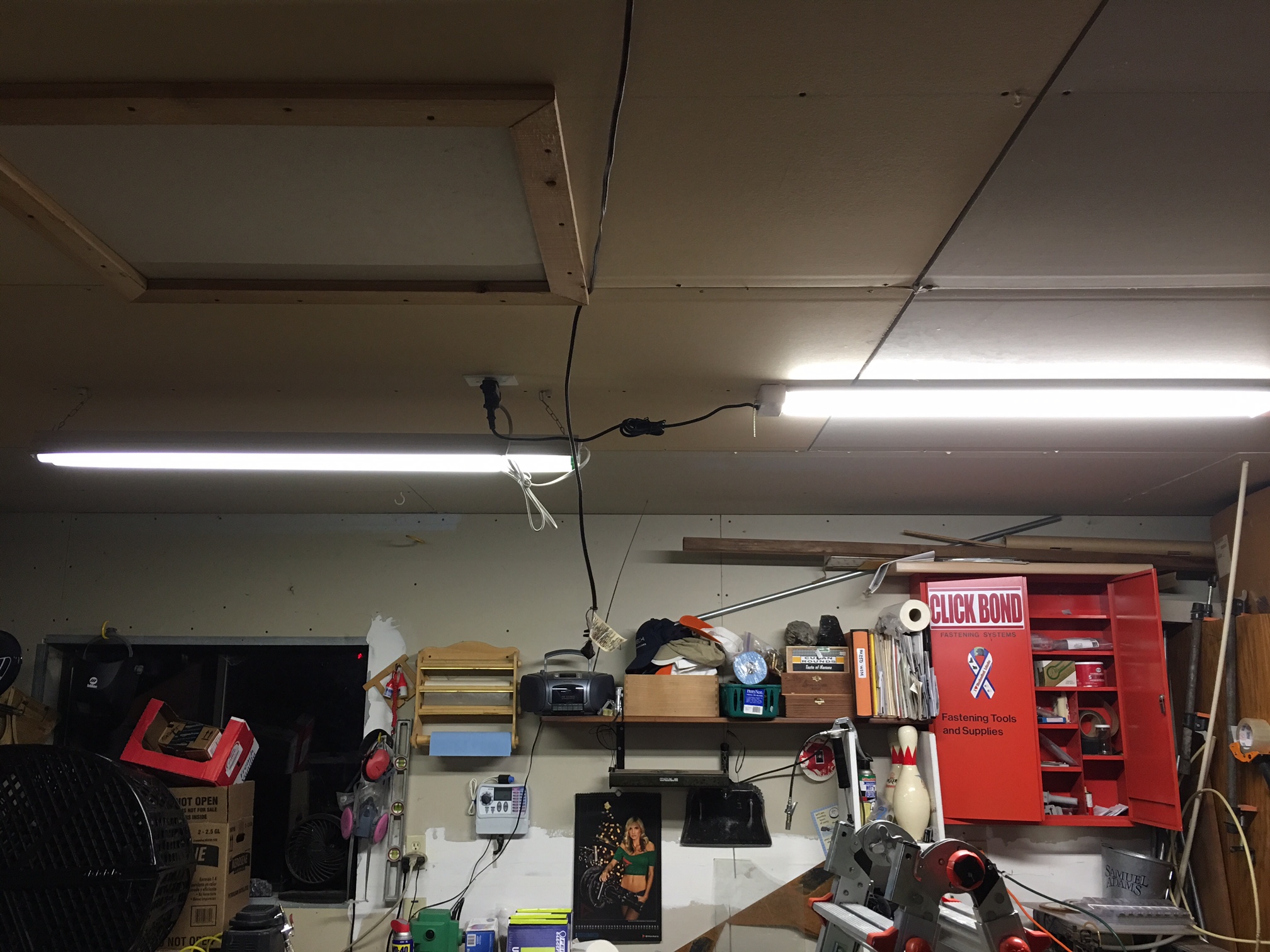 Just installed one Costco bought Feit 4ft LEDs. Advertised as 4000K, 3700lumen, 50,000hr. Flush mounted to ceiling next to hanging T-12s. Big difference! Besides being much brighter I like the flush mount giving me more room to wield around 8ft pieces of stuff. Going to swap out the others and flush mount them too. Someday I will mud and tape drywall ceiling and paint it white. Should really brighten things up! Oh and they don't give me any issue with RF inference with my old radio!