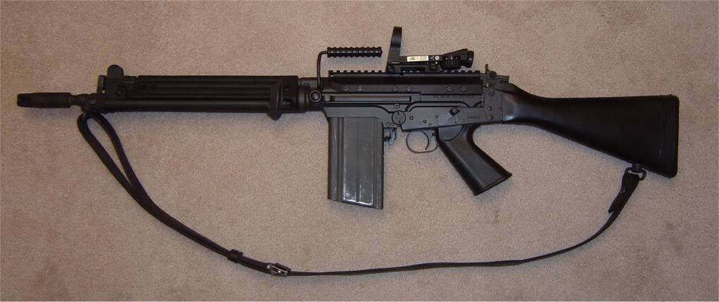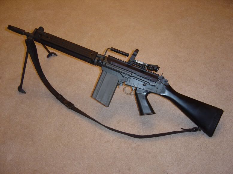 TheFN - that's my favorite. .308 with an integral bi-pod, "the right arm of the free world." It's not full auto, but squeezing that puppy off as fast as I can it sure feels good. Enough to get a 5 gal bucket dancing in the air. :D