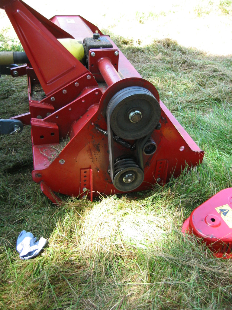 I don't know why your mower won't touch the ground but it sounds more like a problem with your tractor 3PT lower arms not going low enough. You can see that on my tractor the mower is on the ground and the pins are attached normally (2 clevis pins installed). The little tabs holding the Cat 1 pin can jiggle a bit but don't really move. Are you sure you don't have a stop or something like check chains preventing the 3PT arms from lowering?