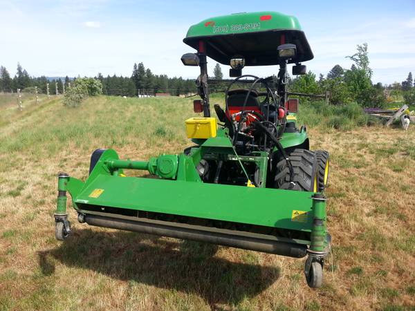 "Don't just mow your field grass or weeds. . ..mulch it with this Liberty 6' Flail Mower with hydraulic offset and custom mounting for John Deere I-Match or Quick Hitch system. Comes complete with grass and weed blades. I've also custom built casters for the mower for smoother operation. ALL flail mowers come with skids for ground contact (reason unknown) which causes the mower to dig into the ground, especially on turns creating tension on the 3 point system. These custom casters remove all the tension and create a much better cut. I'm only selling this mower because I'm moving up to a larger tractor and mower. This is a great unit. Come see it in operation" 6' Flail Mower