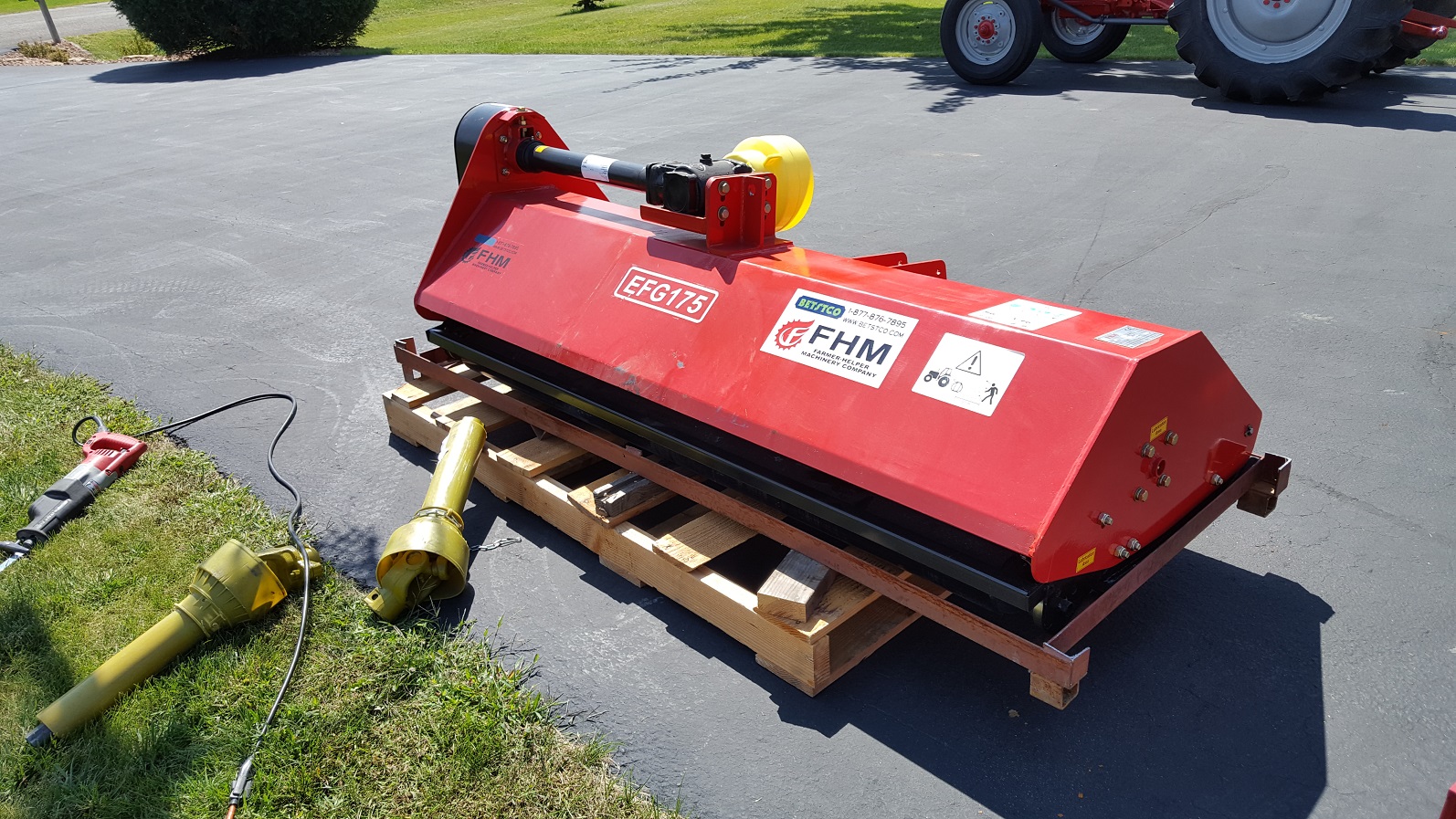 I haven't had a chance to take any pictures of areas mowed or anything yet, but figured I'd at least post initial impressions of my Value Leader EFG-175. It was pretty heavily protected in a welded angle iron frame that had to be cut apart. Everything seems to be heavily built, the only thing I don't care for is that one of the grease zircs is under the belt cover. It's only one bolt to remove, but that requires getting tools out and I have a feeling if removed over and over that one bolt will eventually be a problem. I'll be drilling a hole in the cover across from the zirc. I've mowed about 3 hours with it so far, I'm generally satisfied but not thrilled at this point. It leaves a bit more standing than I would like, especially some sort of tall weed flower with a thin stalk, just leaves a lot of stalks standing even after hitting some of it twice. It's certainly possible that some adjustments will help, time will tell. We've had several rainy days in a row now so I haven't been able to get out, today I tried mowing with wet grass and ended up having to cut about 30 lbs of wet grass out of the roller....won't be trying that again... :laughing: I'll have to get some pics of it on the tractor and some mowing shots of course, but for now here's what I have..